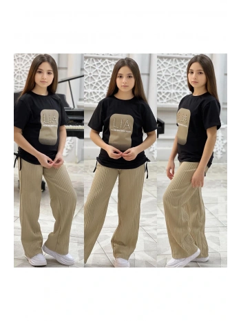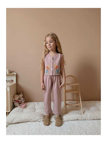 Kız çocuk müslin kumaş taşlı gömlek pantolon thsort takım