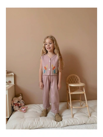 KIZ ÇOCUK İKİLİ ÇİÇEKLİ YELEKLI TAKIM