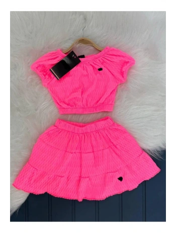 Kız çocuk crop etek yazlık alt üst takım(1 beden büyük alınız)