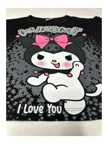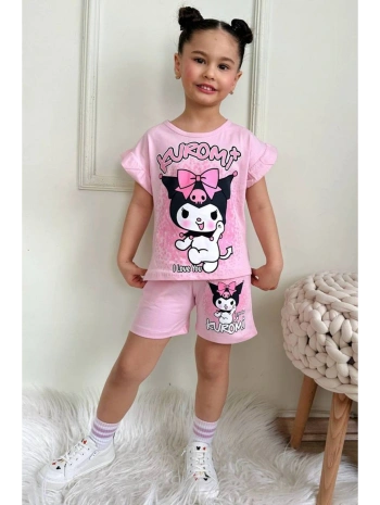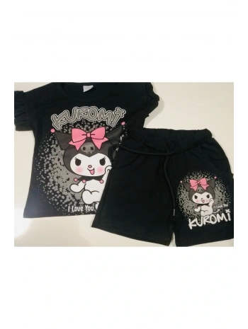 Kuromi Baskılı Alt Üst T-Shirt Şort Takım. Yazlık şortlu takım. % 100 Pamuk Alt Üst Takım