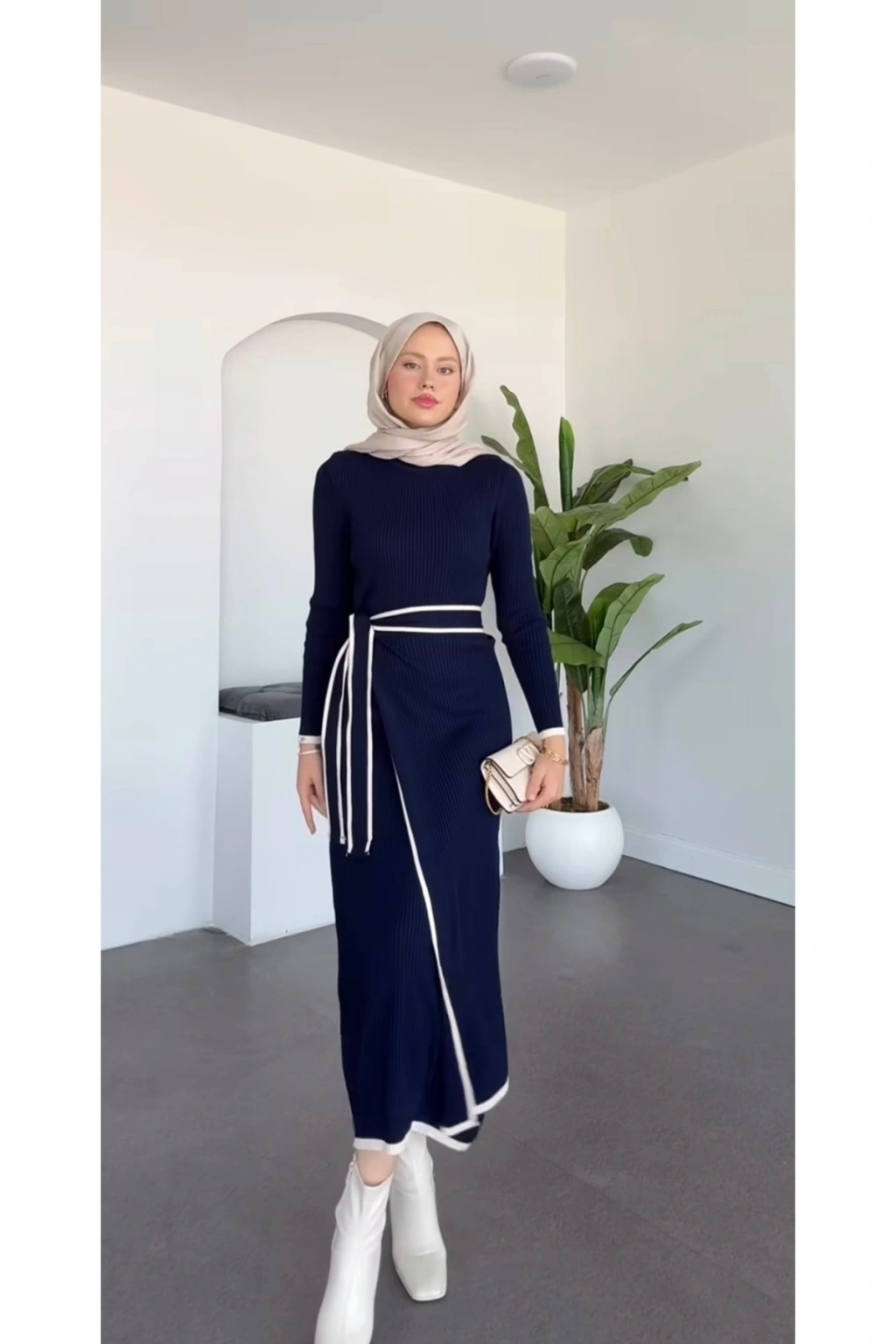 Yaz modası kışında devam ediyor.; ?Belden bağlamalı triko elbisemiz dolapların tamamlayıcısı olucak.; Standart elbisedir ve ek bağlama parçası mevcuttur.; Fitilli %100 pamuk üretimdir.; Günlük kullanımda hem şık hem rahatlığı bir arada sunar.; Triko kumaşı sayesinde farklı vücut tiplerine kolayca uyum sağlar.
