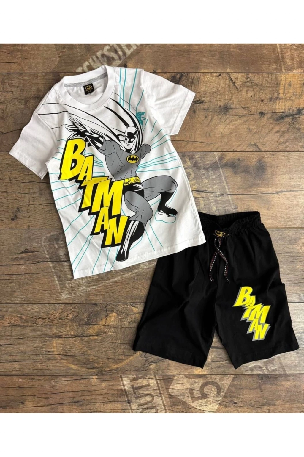 Batman desenli erkek çocuk yazlık şortlu takım
