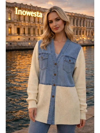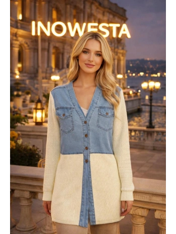 Kadın Kot Ve Triko Detaylı Hırka Üst Kalite Mevsimlik