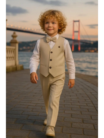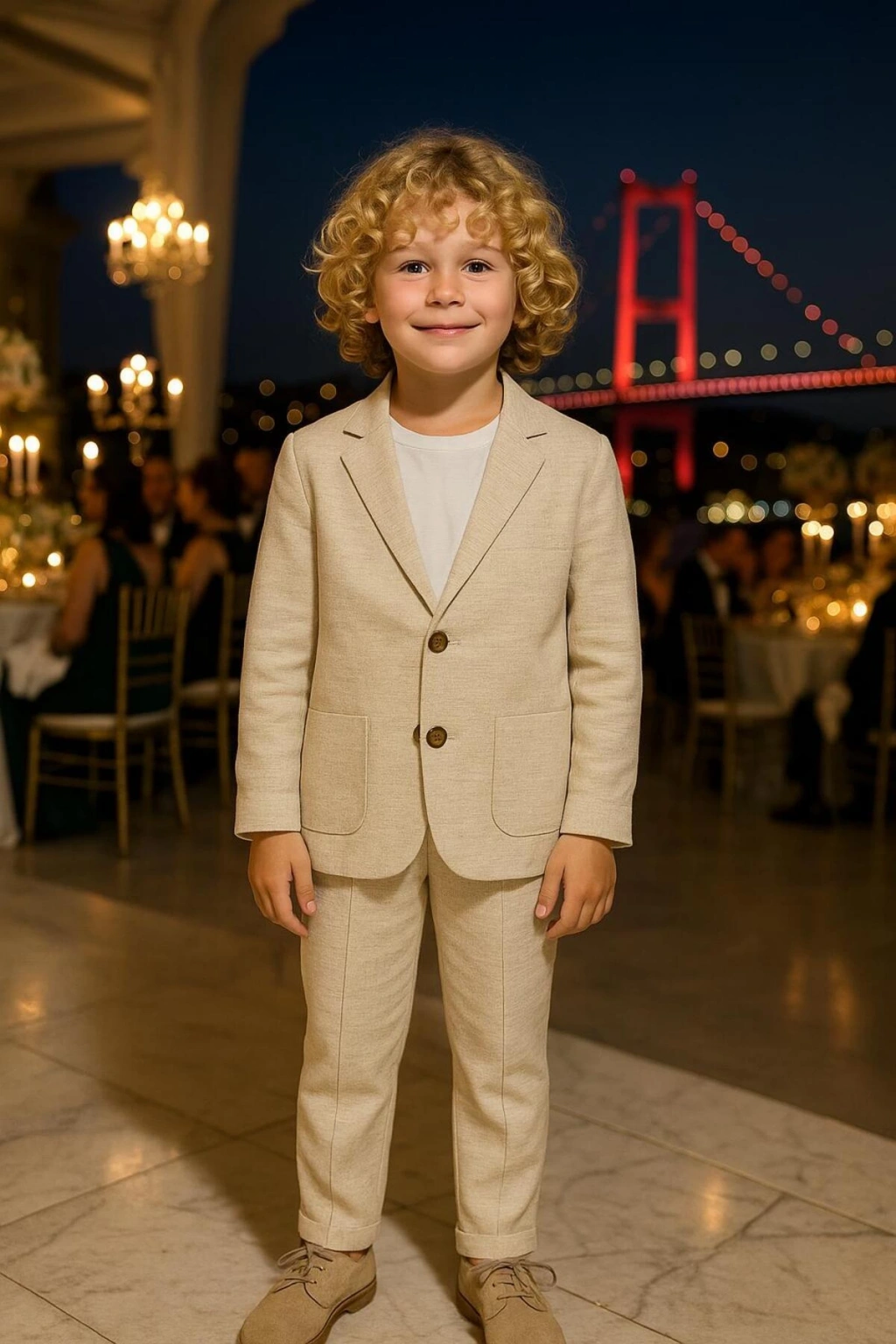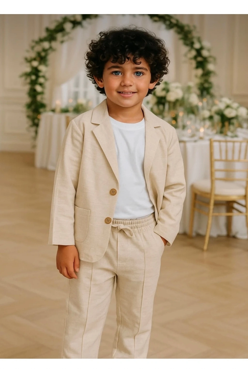 - Rahat ve şık bir görünüm sunan regular kalıp, günlük kullanım veya özel günlerde konforlu bir tercih sağlar.; - Standart boy uzunluğu ile farklı vücut tiplerine uyum sağlayarak herkesin rahatça giyebileceği bir yapıya sahiptir.; - Erkek çocukları için tasarlanmış bu takım elbise, onların şıklığını ön plana çıkarırken aynı zamanda hareket özgürlüğü tanır.; - Üretiminde kullanılan organik materyaller sayesinde çevre dostu bir seçim yapmış olursunuz; doğaya duyarlı bir moda anlayışını destekler.; - Uzun kollu tasarım soğuk havalarda ekstra koruma sağlarken, düz paça kesimi modern bir siluet oluşturur.; - Doğal düğmelerle zenginleştirilmiş detaylar hem estetik hem de işlevsellik açısından değer katmaktadır.; - Tüm sezonlarda tercih edilebilen bu takım elbise, mevsimsel değişimlere karşı esneklik gösterirken stilinizden ödün vermezsiniz.; - Ekru rengiyle zarifliği yakalayan bu takım elbise, kolay kombinlenebilirliği sayesinde gardrobunuzda vazgeçilmez bir parça haline gelir Erkek Çocuk Ceketli Spor Salaş 3’Lü Takım/Takım Elbise/Damatlık/Özel Gün Takım/Düğün/ Doğum Günü/Premium | YÜKSEK ÜST KALİTE | %’100 Pamuk Kumaş Ceket, Pantolon.; Dokuma Compack penye Likralı üst kalite tişort