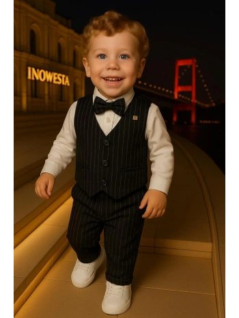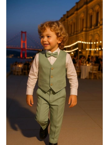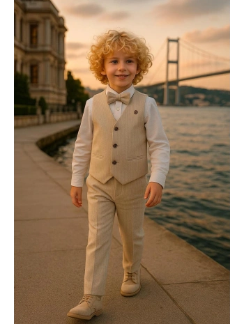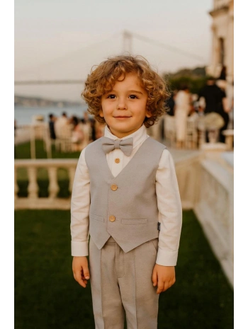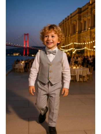 Erkek Çocuk Yelekli Takım Elbise | Gömlek-Yelek-Papyon-Pantolon| 4'parça Takım