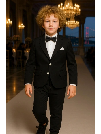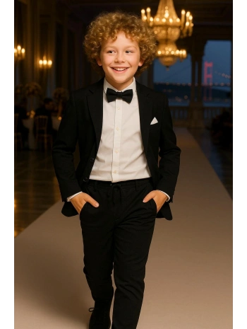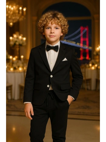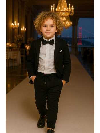 Erkek Çocuk Ceket Gömlek Spor Pantolon Papyonlu Üçlü Takım Elbise 4’Parça