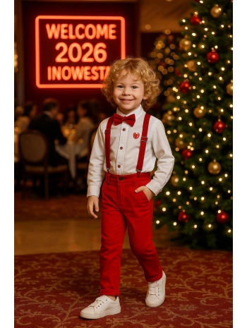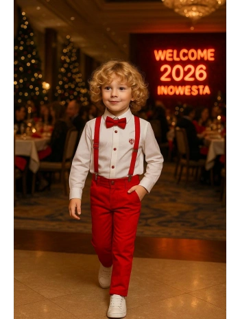 Bebek&Çocuk Yılbaşı Özel Salopet Takım Gömlek Pantolon Papyon-4'Parça