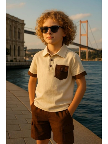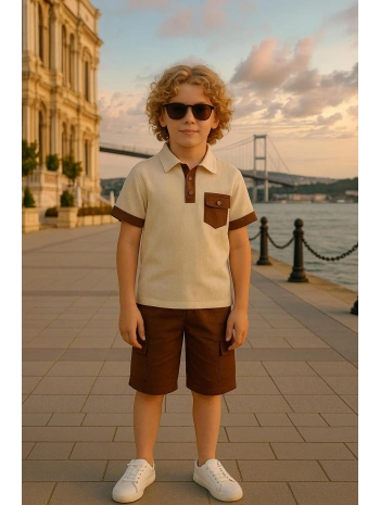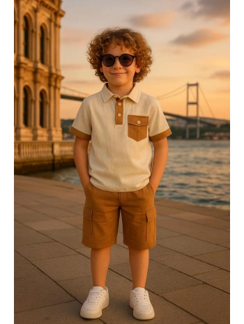 Erkek çocuk müslin kumaş şortlu Alt Üst Takım