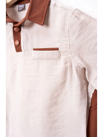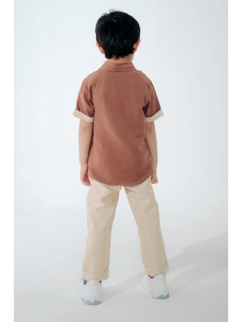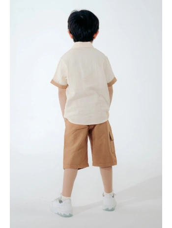 Erkek çocuk pamuklu kumaş gömlek şort yazlık Alt Üst Takım