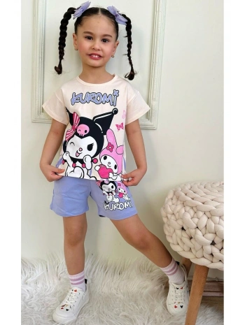 Kuromi Baskılı Beyaz Tişört ve Lila Renkli Şortlu Kız Çocuk Takım
