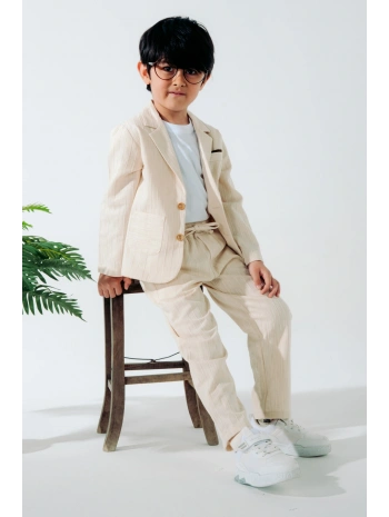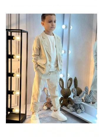 Erkek çocuk 2 li keten pantolon ceket onu çıt kapamali