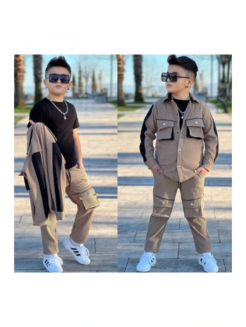 Erkek Çocuk Haki Renk 3 Lü Bayramlık GömLek Takım