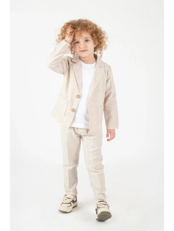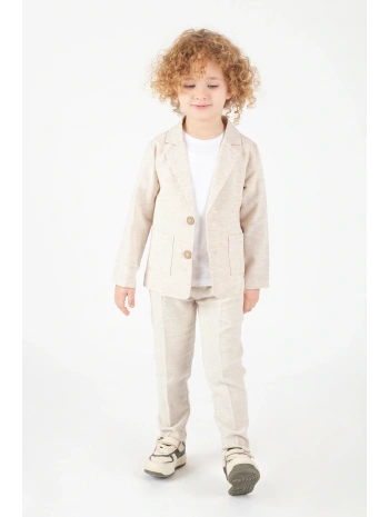 Bej Renkli Çocuk Takım Elbise - Ceket, Pantolon ve Basic Tişört | Şık ve Rahat
