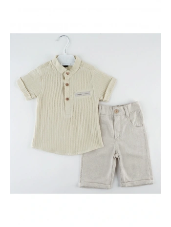 Erkek Çocuk Keten Tişört Takım