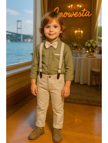 Çocuk Salopet Takım Üst KALİTE |Gömlek Salopet Pantolon Papyon-4'Parça|