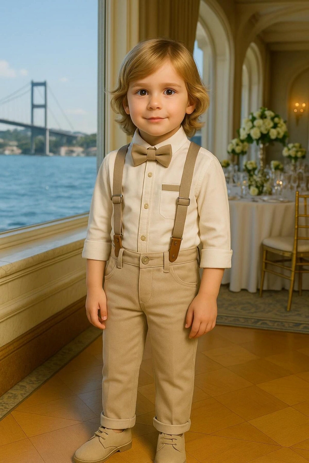 Çocuk Salopet Takım Üst KALİTE |Gömlek Salopet Pantolon Papyon-4'Parça|