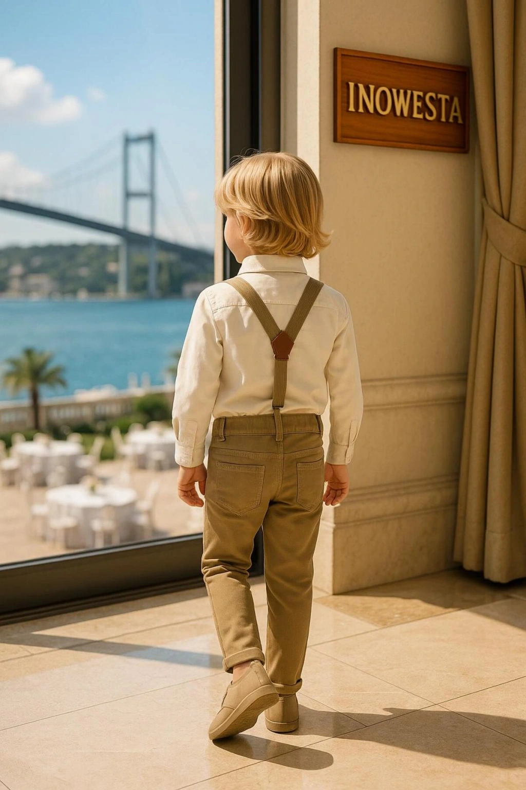 - Özel günler ve şık etkinlikler için ideal, Smart/Office koleksiyonundan çocuk salopet takımı.; - Beli lastikli tasarımı ile rahat bir kullanım sunar ve çocukların hareket özgürlüğünü kısıtlamaz.; - Sivri yaka detayı ile klasik ve şık bir görünüm kazandırırken, katlamalı kol tasarımı modern bir dokunuş sağlar.; - Regular paça tipi sayesinde gün boyu konforlu bir deneyim sunar.; - Uzun kollu ve uzun boy tasarımıyla mevsim geçişlerinde de tercih edilebilir; dört mevsim kullanım için uygundur.; - Doğal düğme detayları ile hem estetik hem de fonksiyonel bir kullanım imkanı tanır.; - Düz deseniyle kolayca kombinlenebilir ve her türlü aksesuarla uyum sağlar.; - Business ortamlarına uygun olarak tasarlanmıştır; işlevselliği ve şıklığı bir arada sunar.; - Dokuma kumaş tipi dayanıklılık ve kaliteyi garanti ederken, pamuk materyali cildi tahriş etmeden yumuşaklık sağlar.; - Erkek çocuklara özel olarak tasarlanmıştır; genç stil anlayışını yansıtır.; - Türkiye menşeli ürün olmasıyla yerel üretim "Bir Beden Büyük Tercih Edebilirsiniz"
