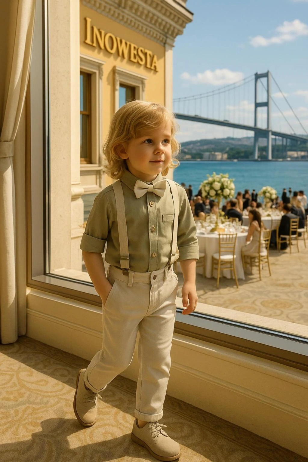 - Özel günler ve şık etkinlikler için ideal, Smart/Office koleksiyonundan çocuk salopet takımı.; - Beli lastikli tasarımı ile rahat bir kullanım sunar ve çocukların hareket özgürlüğünü kısıtlamaz.; - Sivri yaka detayı ile klasik ve şık bir görünüm kazandırırken, katlamalı kol tasarımı modern bir dokunuş sağlar.; - Regular paça tipi sayesinde gün boyu konforlu bir deneyim sunar.; - Uzun kollu ve uzun boy tasarımıyla mevsim geçişlerinde de tercih edilebilir; dört mevsim kullanım için uygundur.; - Doğal düğme detayları ile hem estetik hem de fonksiyonel bir kullanım imkanı tanır.; - Düz deseniyle kolayca kombinlenebilir ve her türlü aksesuarla uyum sağlar.; - Business ortamlarına uygun olarak tasarlanmıştır; işlevselliği ve şıklığı bir arada sunar.; - Dokuma kumaş tipi dayanıklılık ve kaliteyi garanti ederken, pamuk materyali cildi tahriş etmeden yumuşaklık sağlar.; - Erkek çocuklara özel olarak tasarlanmıştır; genç stil anlayışını yansıtır.; - Türkiye menşeli ürün olmasıyla yerel üretim "Bir Beden Büyük Tercih Edebilirsiniz"