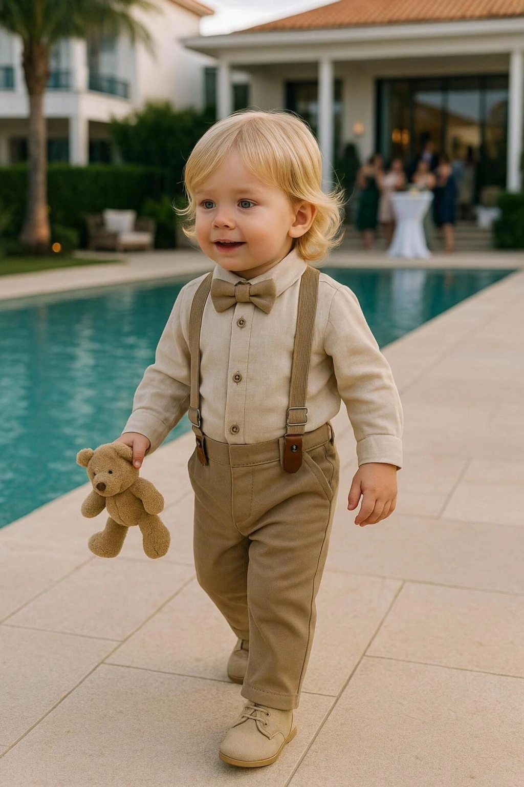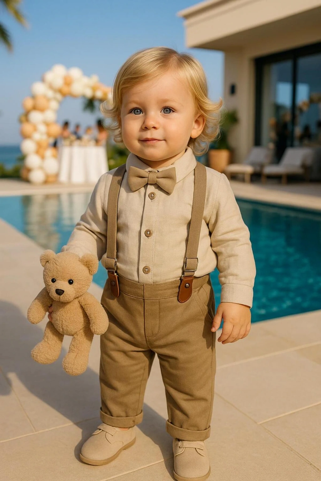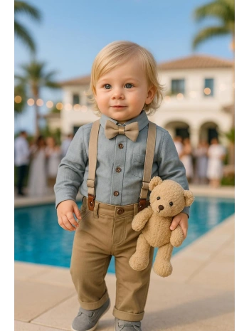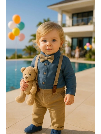 - Standart kol tasarımı ile rahat hareket etme özgürlüğü sunar.; - Tüm mevsimlerde giyilebilecek orta kalınlıkta müslin dokuma kumaştan üretilmiştir.; - Casual ve günlük kullanım için ideal, rahat bir görünüm sağlar.; - Gömlek-pantolon alt-üst takım olarak, şık ve uyumlu bir kombin oluşturur.; - Boru paça kesimiyle modern bir stil sunarken, düz deseniyle sade ve şık bir görünüm kazandırır.; - Lastikli bel tasarımı sayesinde bebeğinizin hareketlerini kısıtlamadan konforlu bir kullanım sağlar.; - Full düğme kapama özelliği ile kolay giydirme ve çıkarma imkanı sunar.; - Cool & Comfort persona ile hem şık hem de rahat bir deneyim vaat eder.; - Recycle+Organik sürdürülebilirlik detayına sahip olup, çevre dostu bir tercih olarak öne çıkar.; - Gömlek yaka detayıyla klasik ve zamansız bir görünüm kazandırır.; - cepli tasarım ile estetik detaylar eklerken fonksiyonel kullanım sunmaz.; - Astarsız yapısıyla hafiflik ve konforu arttırırken, dokuma kumaş tipi dayanıklılığı garanti eder.; - Türkiye menşeli ürün, yerel üretim