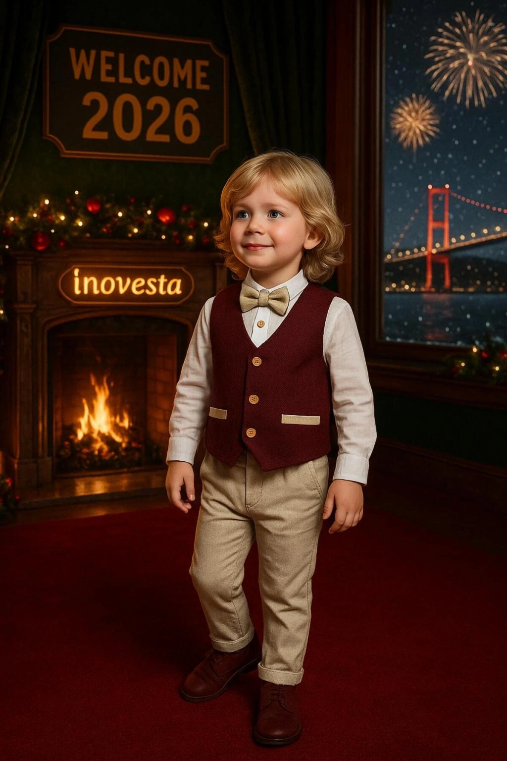 Erkek Bebek&Çocuk Yelekli Takım Elbise / Papyon-Yelek-Gömlek-Pantolon 4'Parça |