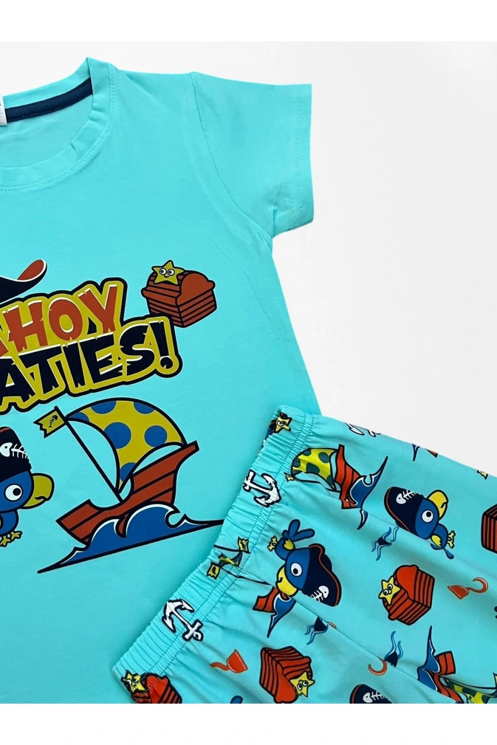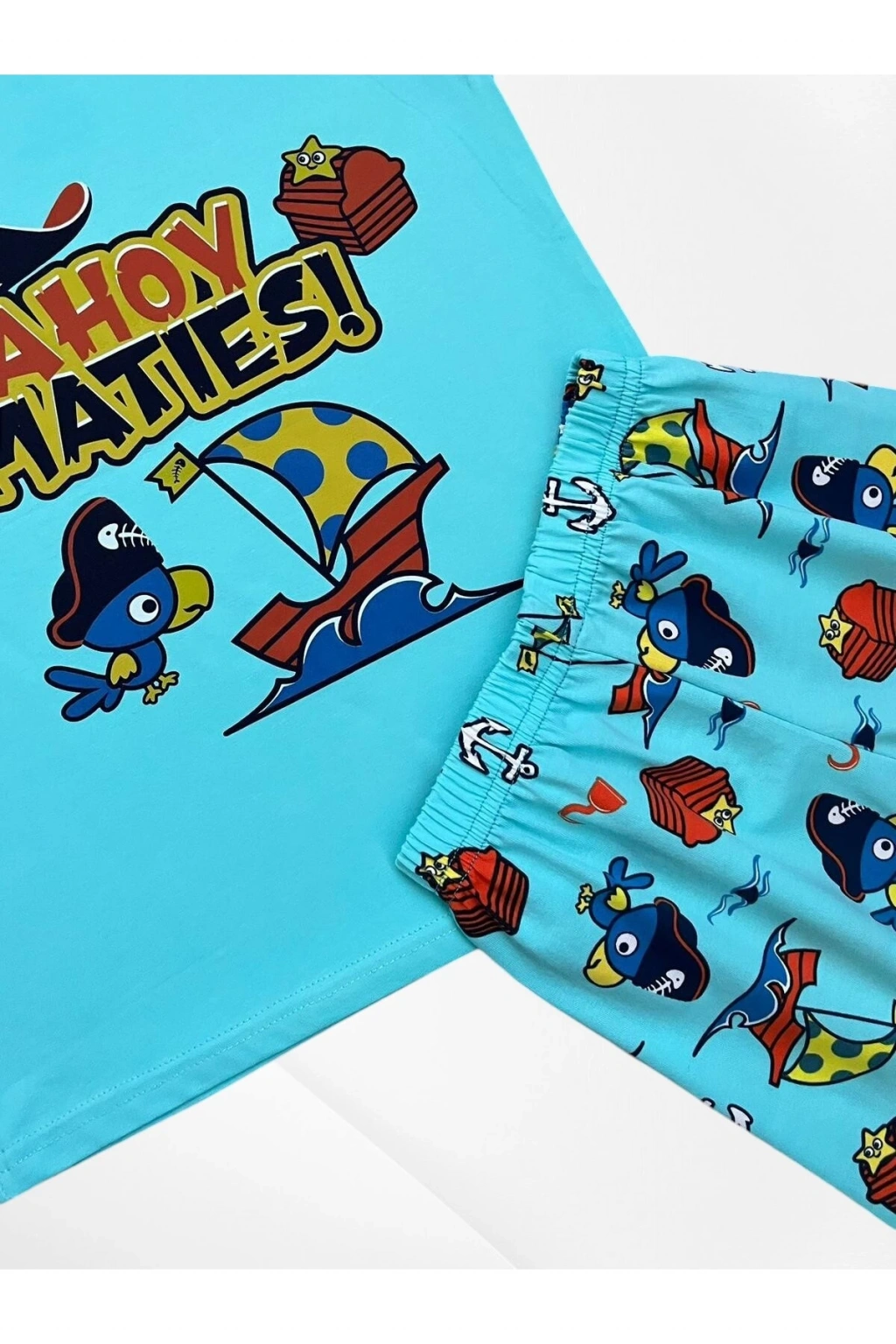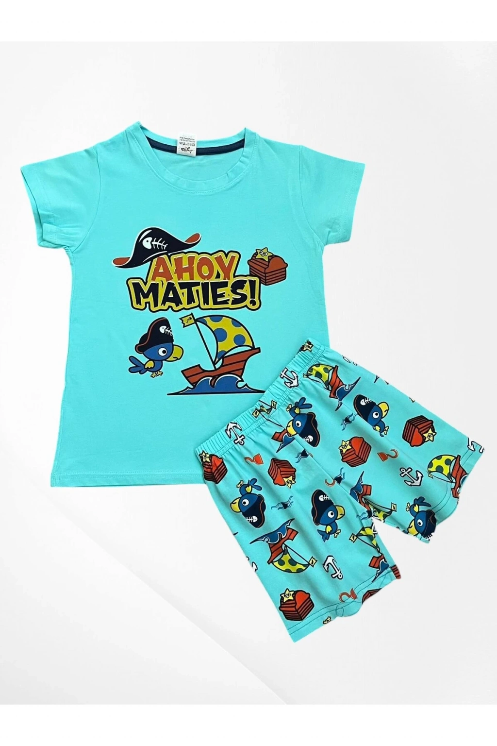 - %100 pamuklu kumaştan üretilmiş olup, cildi tahriş etmeden yumuşak bir dokunuş sunar terletmez.; - Yaz ayları için idealdir; hafif yapısıyla serin tutar ve rahat hareket etme özgürlüğü sağlar.; - Genç çocuk koleksiyonuna ait bu pijama takımı, genç tarzını yansıtan modern tasarımlara sahiptir.; - Lastikli bel tasarımı sayesinde kolay giyilip çıkartılabilir ve gün boyu konforlu bir deneyim yaşatır.; - T-shirt ve şort olmak üzere iki parçadan oluşan alt-üst takım, evde şıklığından ödün vermeyenler için idealdir.; - Dokuma kumaşı dayanıklılığı arttırarak uzun süreli kullanım imkanı tanır.; - Çocukların yaş grubuna uygun olarak tasarlanmıştır; onların hareket kabiliyetini kısıtlamayan regular kalıp ile rahatlık sunar.; - Kısa kol ve bisiklet yakası detaylarıyla yaz akşamları için mükemmel bir seçimdir.; - Düz dokuma tipine sahip olması nedeniyle kolay bakım avantajları sağlar; yıkama sonrasında formunu korur.;