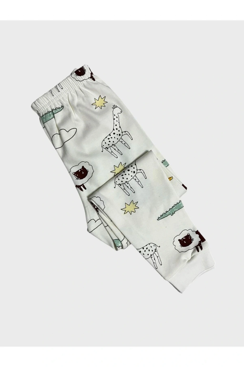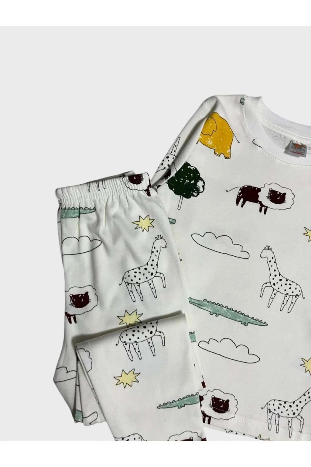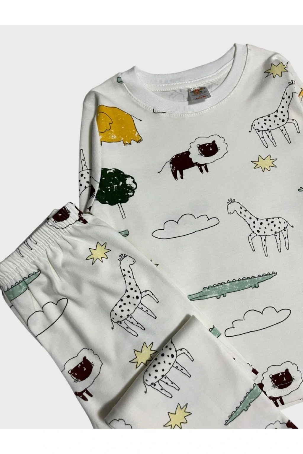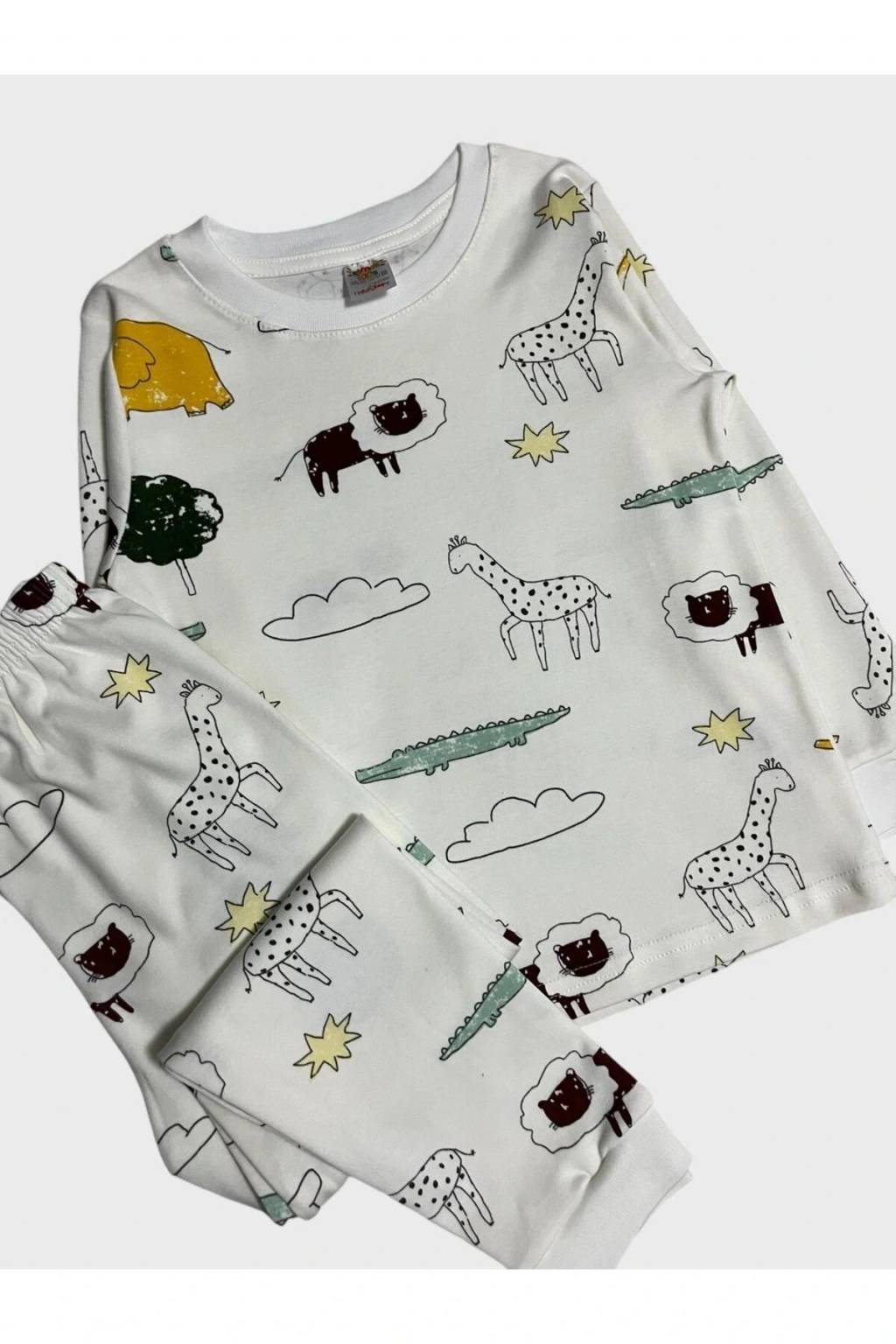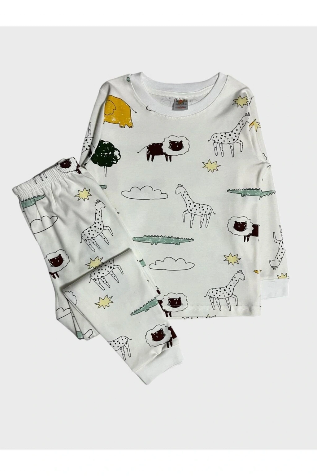 Erkek Çocuk %100 Pamuklu Safari Desenli Beyaz Uzun Kollu Pijama Takımı