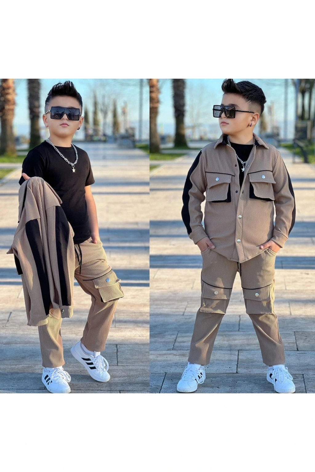 Erkek Çocuk orta Kalınlıkta Kaşe Gömlekli Özel Kombinli 3'Lü Takım