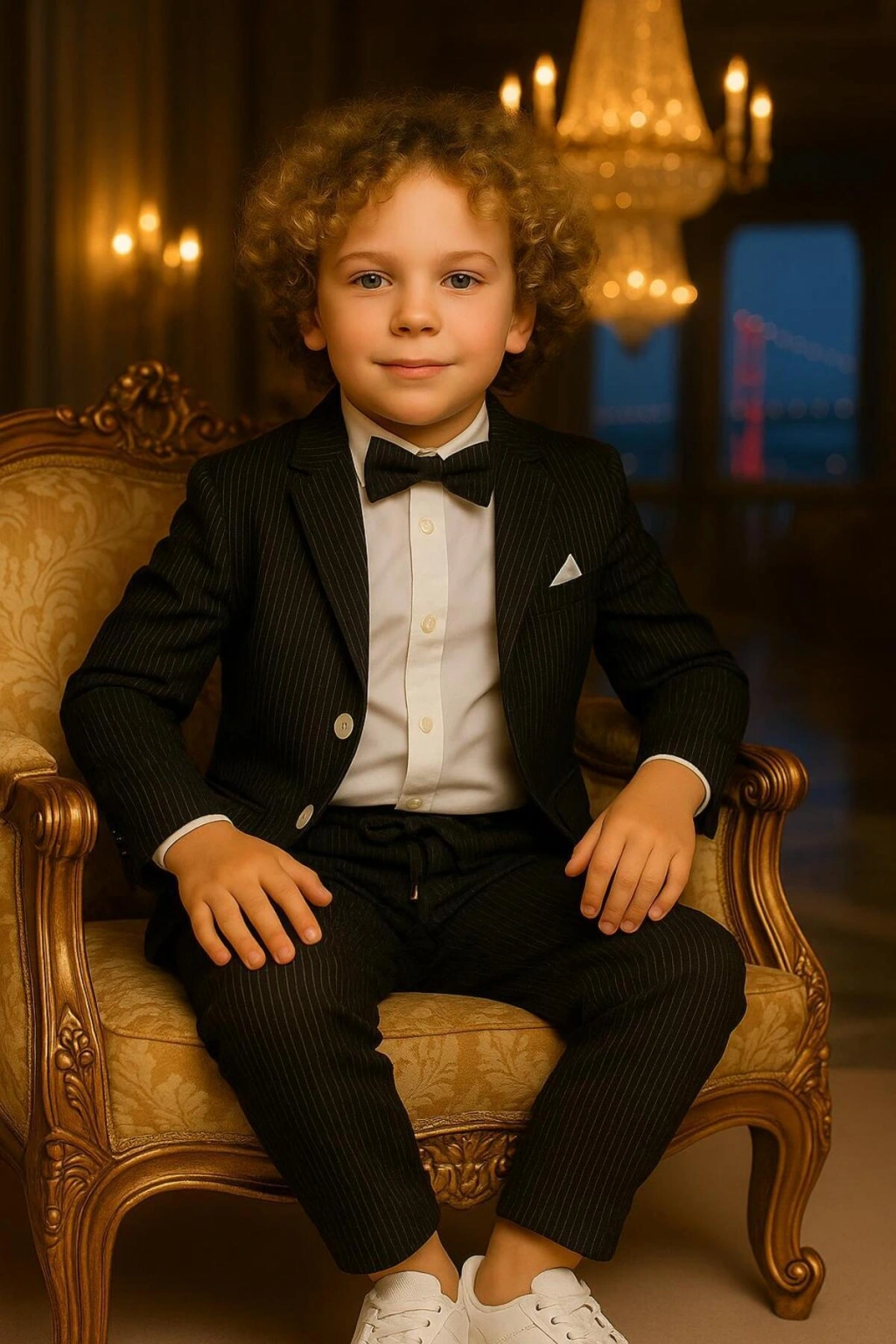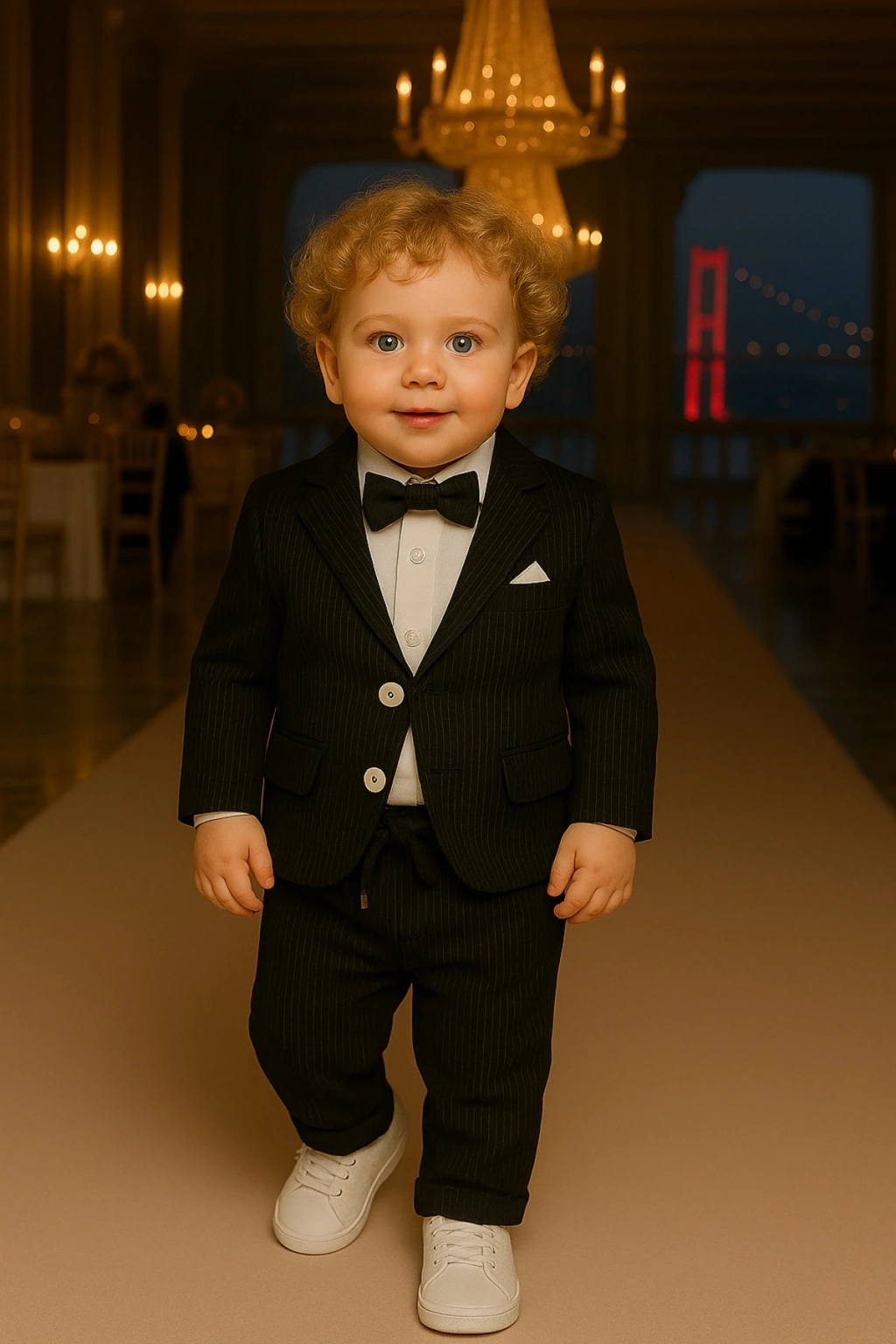 Erkek Çocuk Ceket Gömlek Pantolon Papyonlu Üçlü Takım Elbise 4’Parça(Bir Beden BÜYÜK Tercih Ediniz)