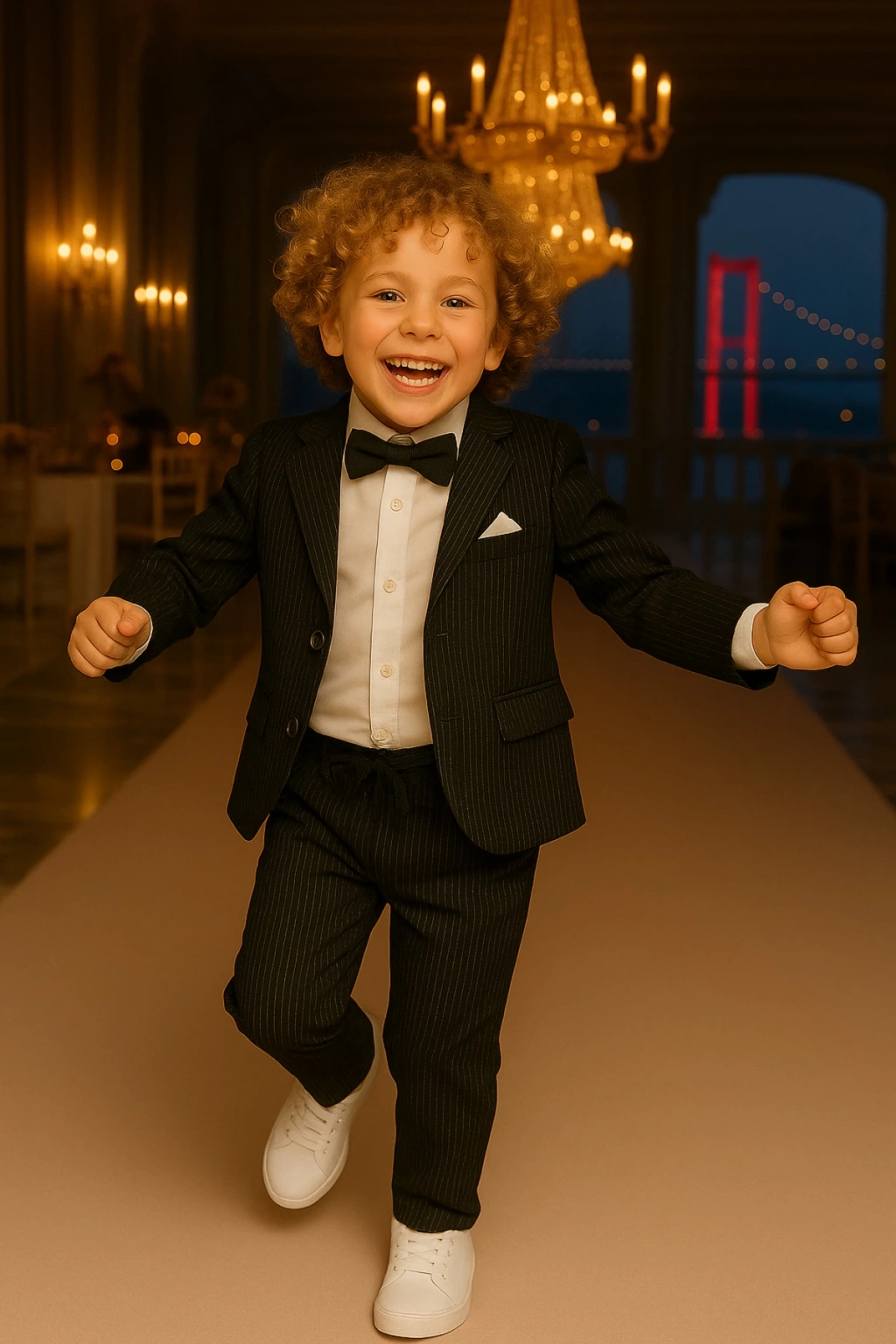 Erkek Çocuk Ceket Gömlek Pantolon Papyonlu Üçlü Takım Elbise 4’Parça(Bir Beden BÜYÜK Tercih Ediniz)