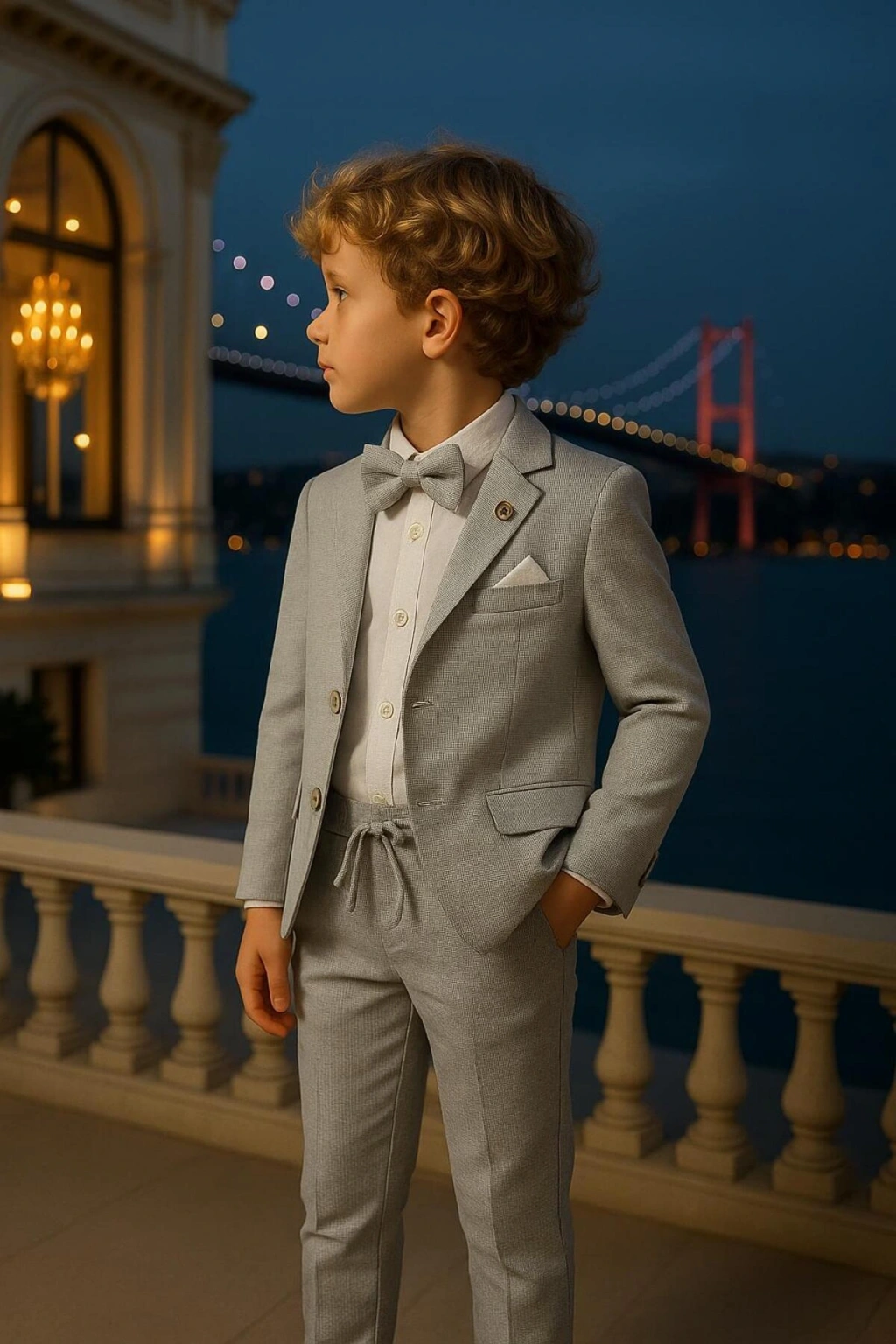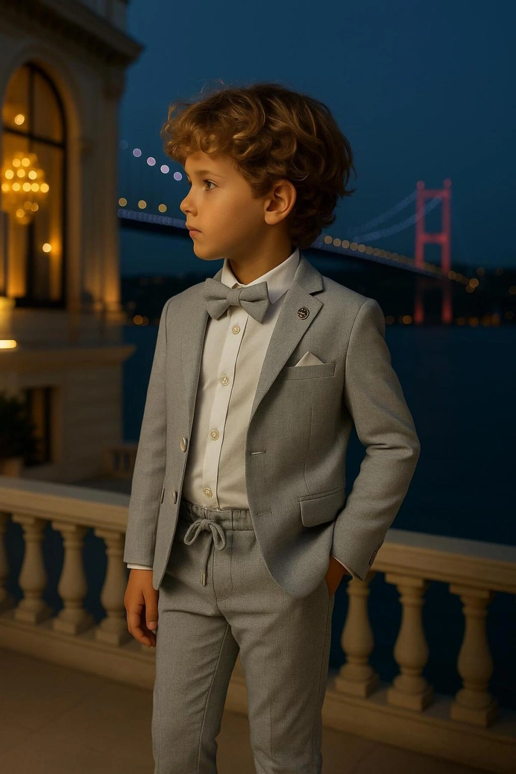 Erkek Çocuk Ceket Gömlek Pantolon Papyonlu Üçlü Takım Elbise 4’Parça(Bir Beden BÜYÜK Tercih Ediniz)