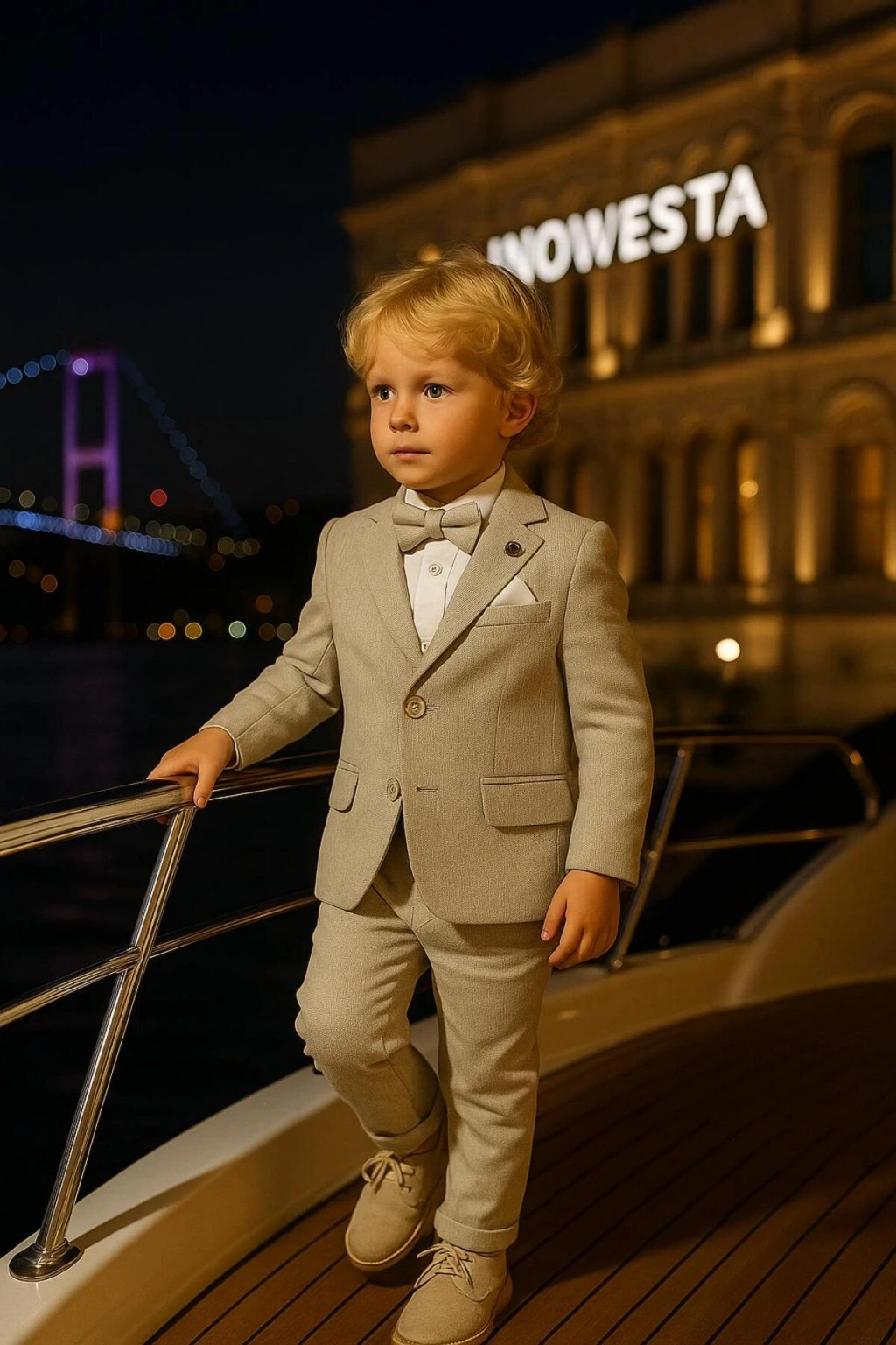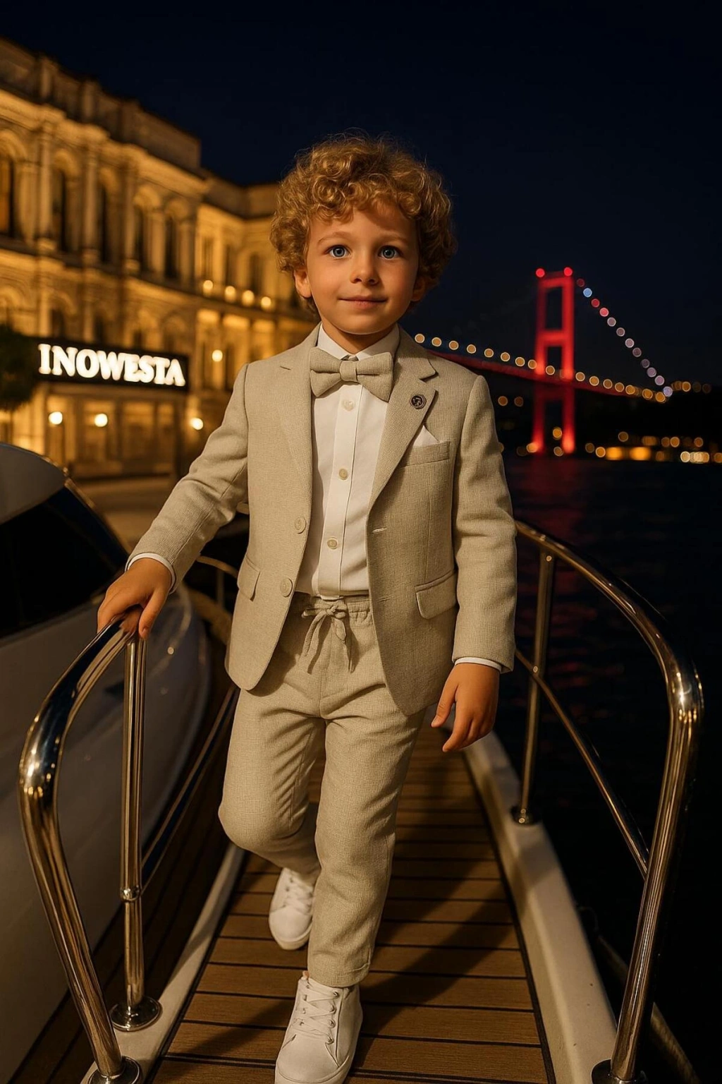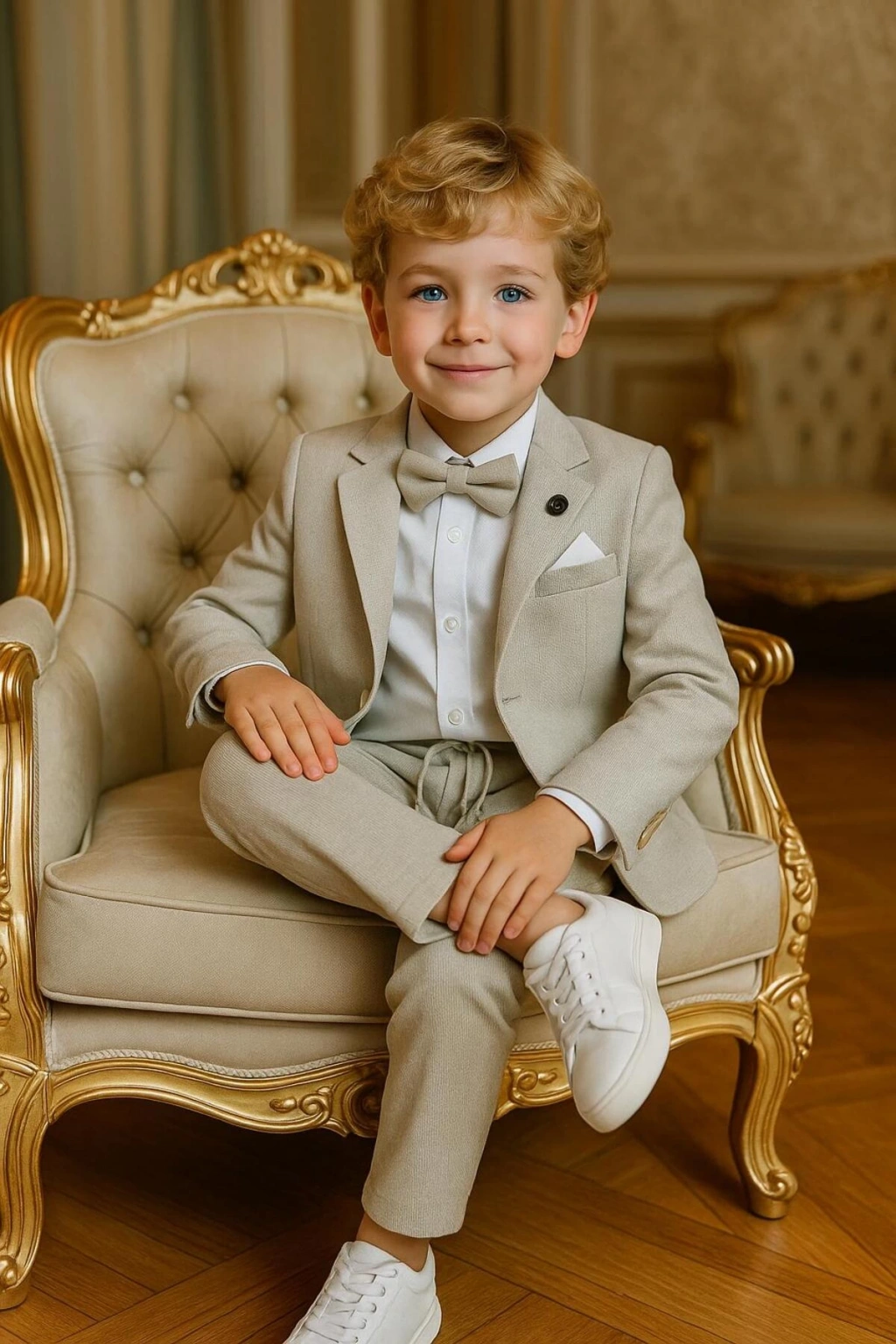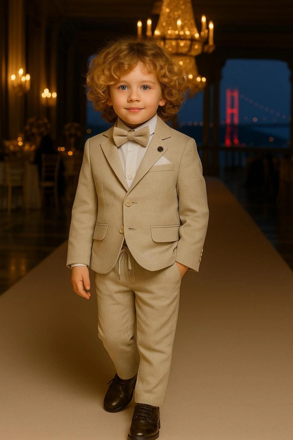 Erkek Çocuk Ceket Gömlek Spor Pantolon Papyonlu Üçlü Takım Elbise 4’Parça
