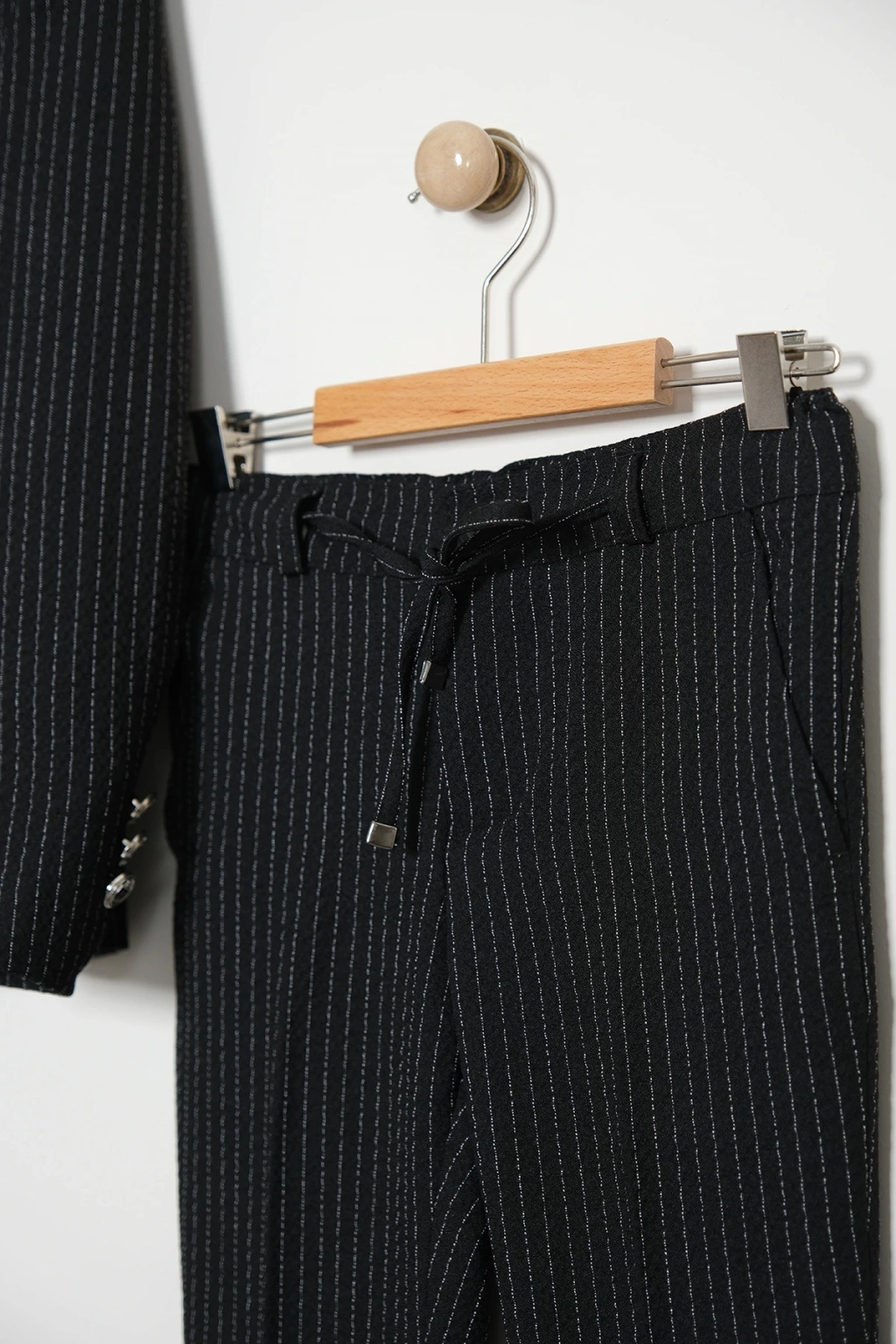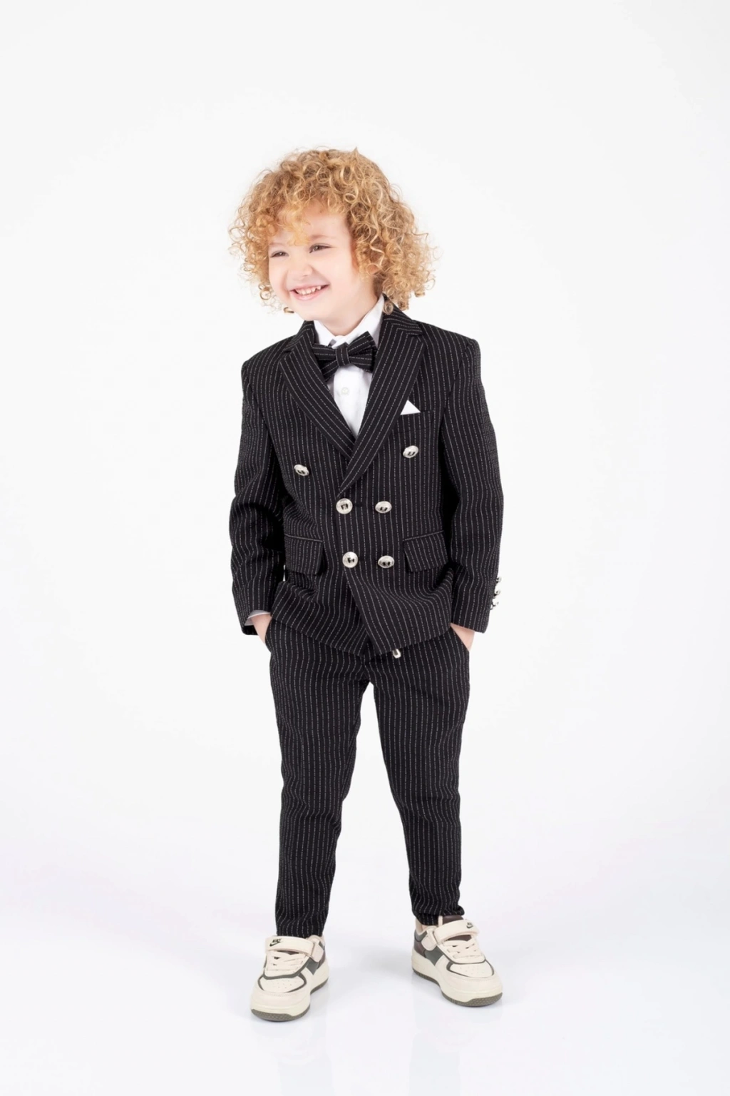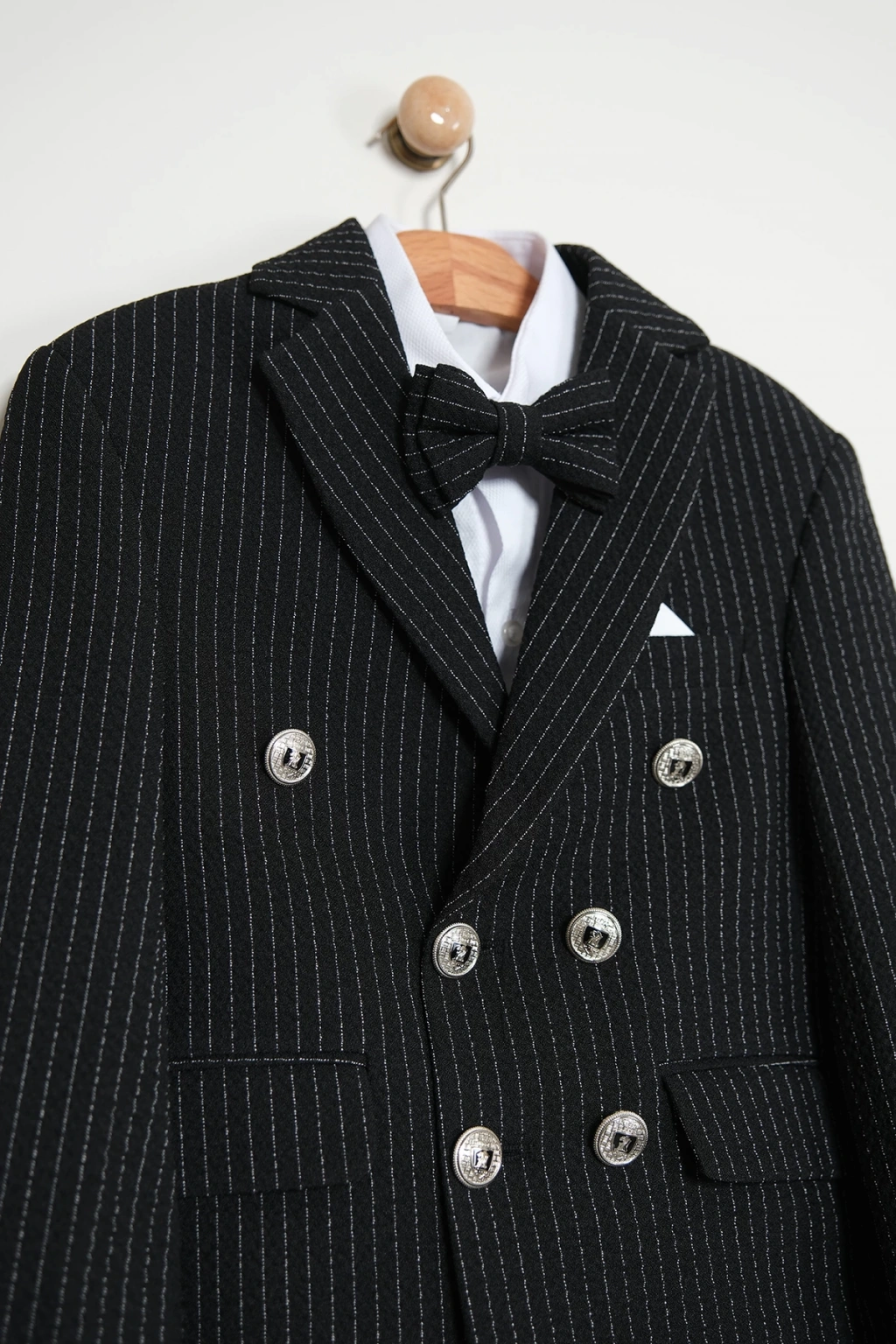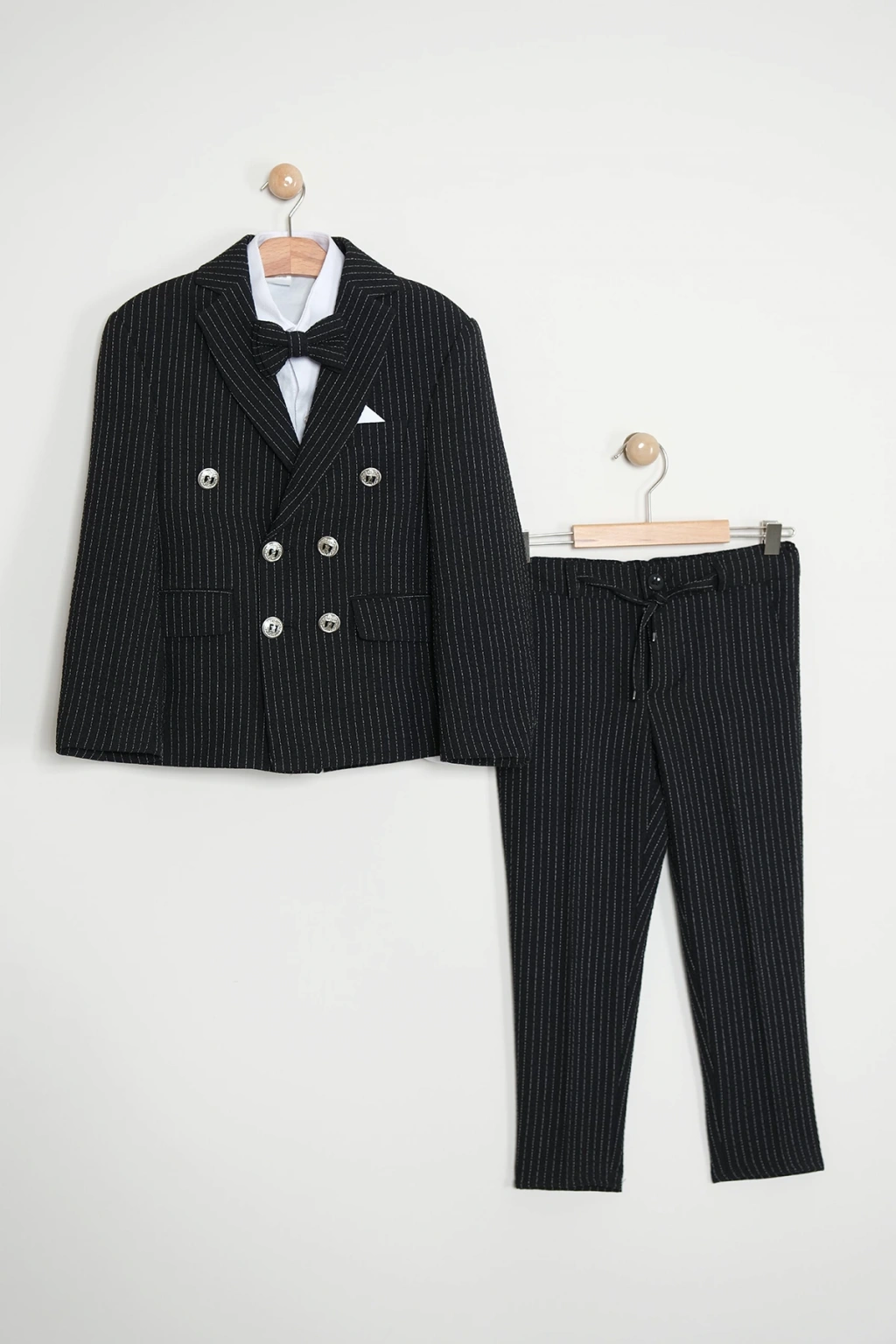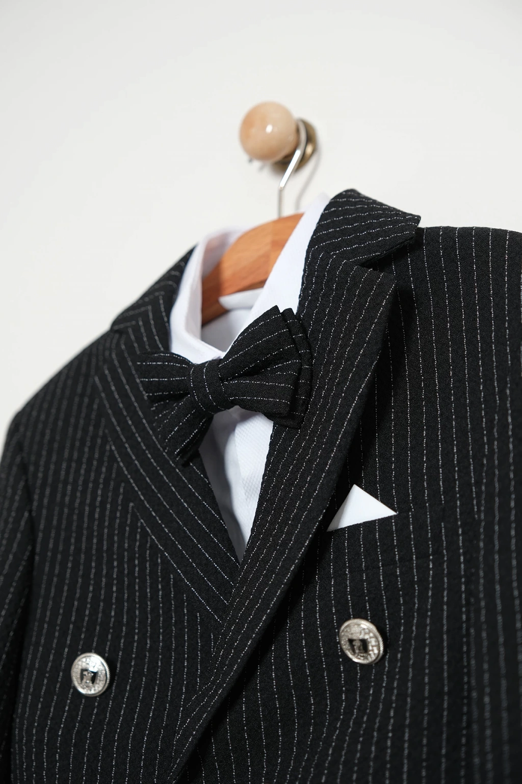 Erkek Çocuk Çizgili Ceket Gömlek Pantolon Papyonlu Takım Elbise Te.1001y-z