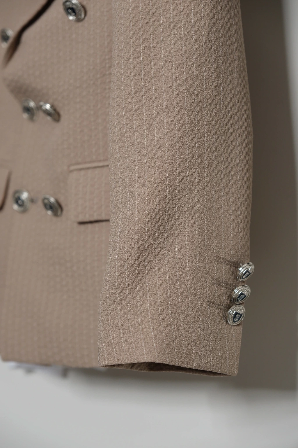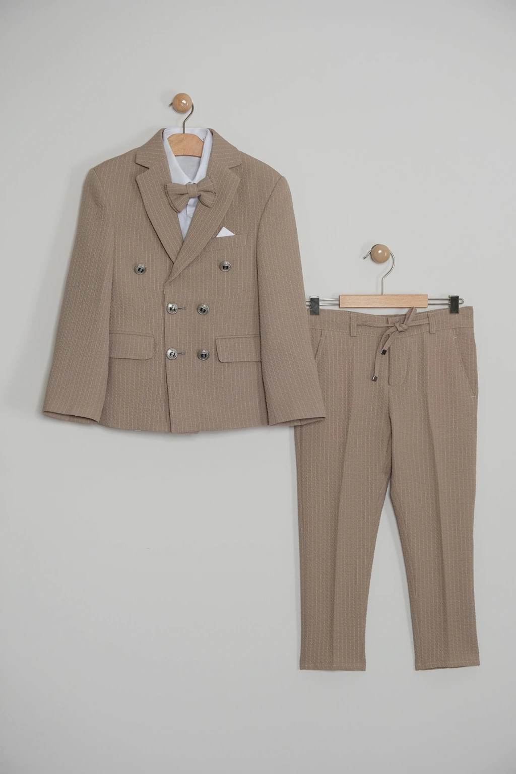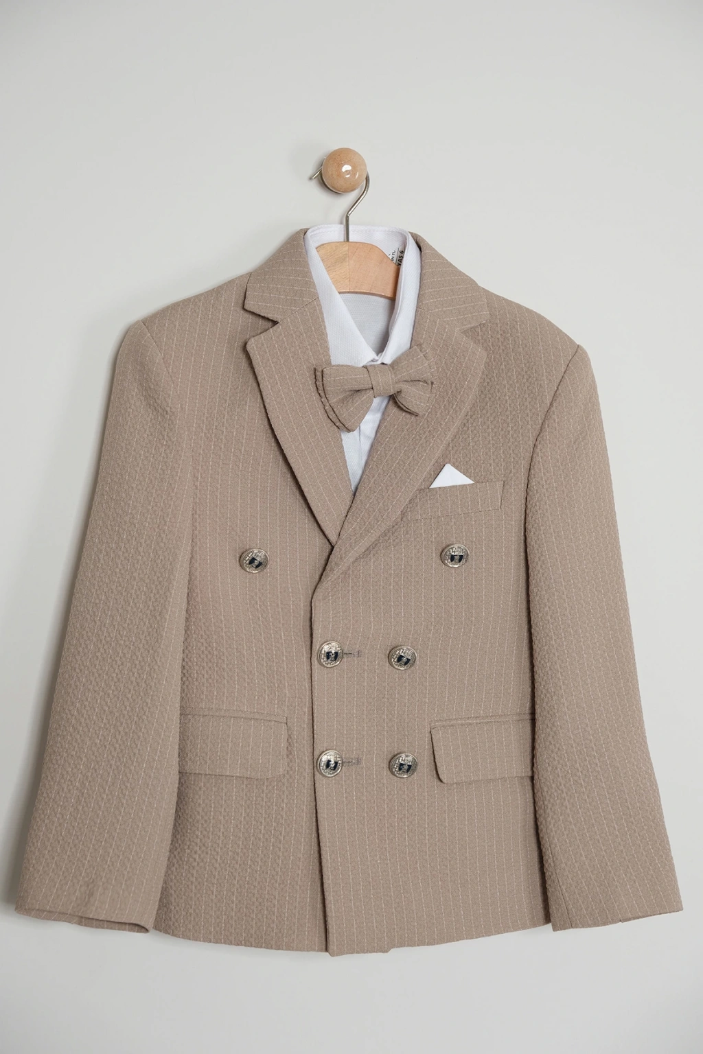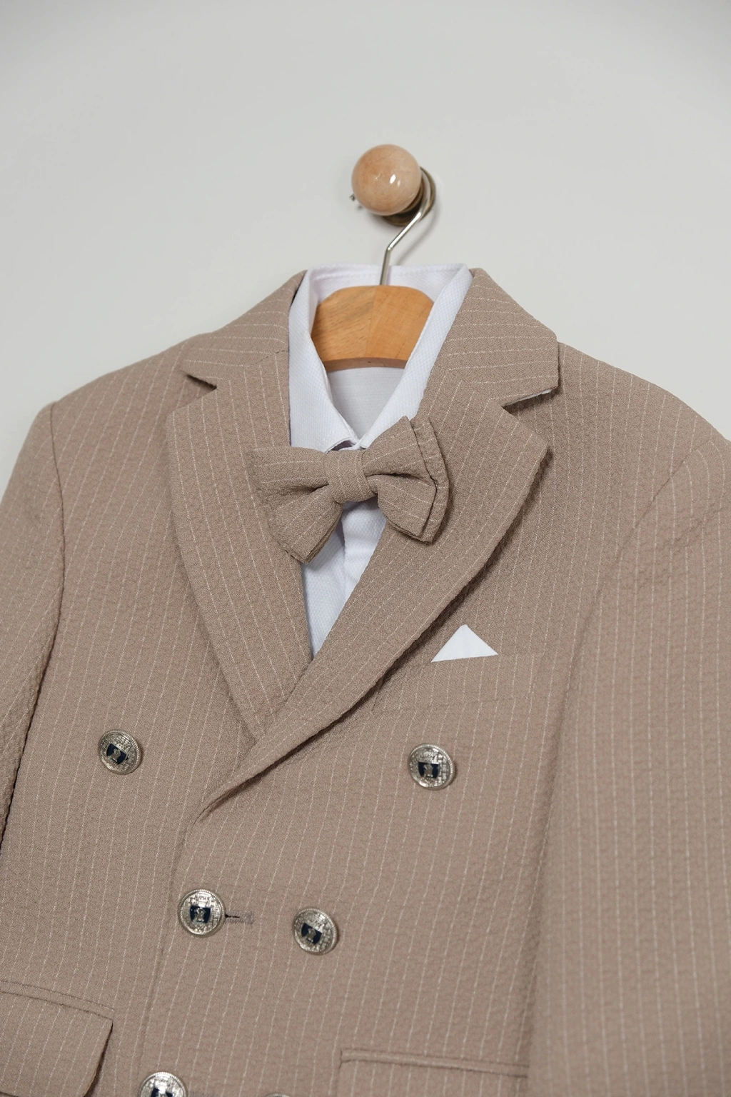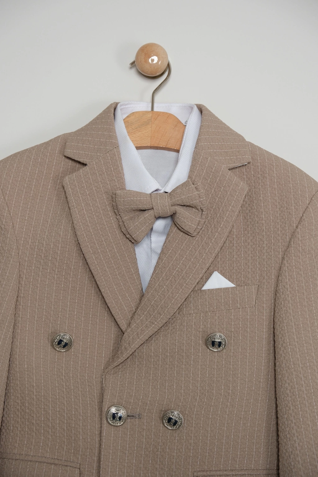 Bej Düğmeli Yelekli Papyonlu Gömlekli Erkek Çocuk 4lü Takım Elbise 20545