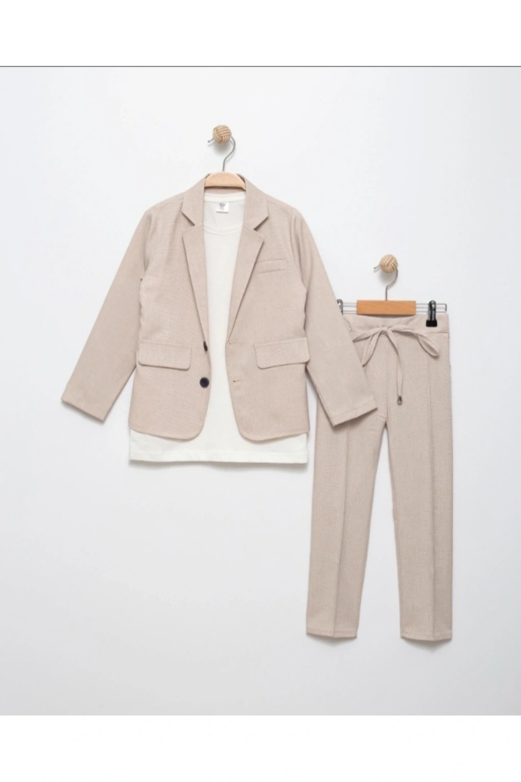 Erkek Çocuk ÜST KALİTE %100 PAMUK-Keten Salaş Ceket T-shirt Pantolon Üçlü Spor Takım Elbise 3’Parça