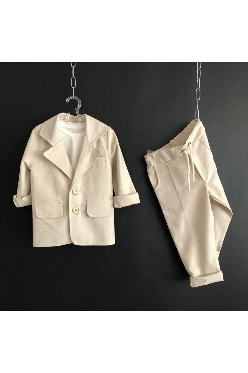Erkek Çocuk ÜST KALİTE %100 PAMUK-Keten Salaş Ceket T-shirt Pantolon Üçlü Spor Takım Elbise 3’Parça