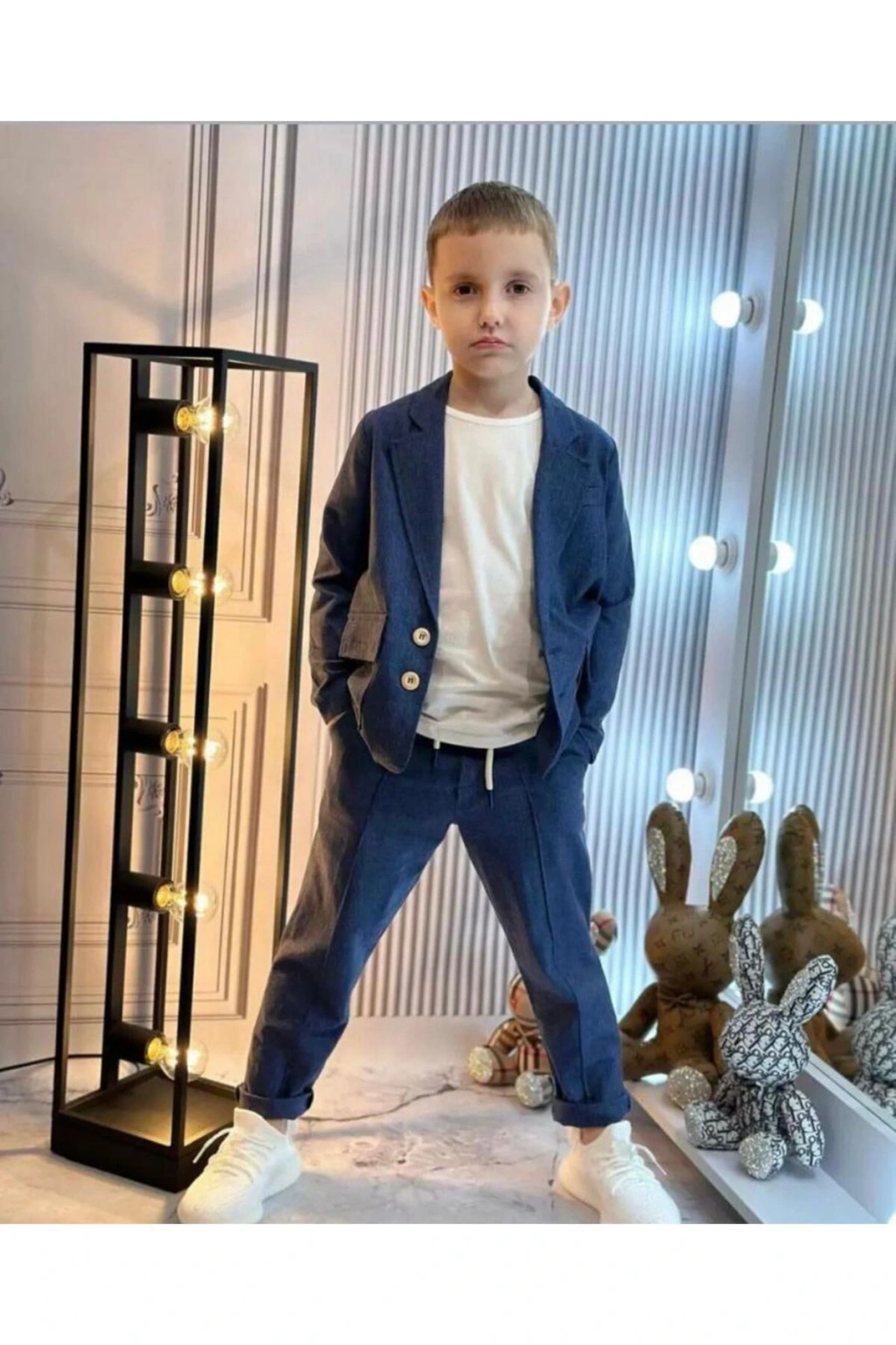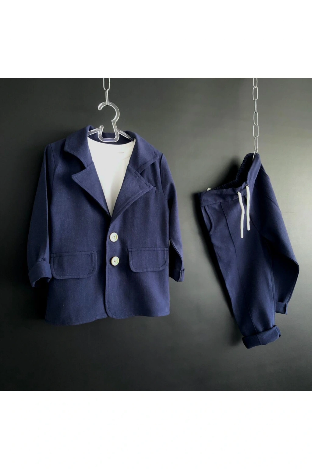 - Rahat kesimi ile oversize kalıpta tasarlanmış, çocukların hareket özgürlüğünü kısıtlamayan bir yapıya sahiptir.; - Doğal keten kumaşı sayesinde yaz aylarında serin tutan ve nefes alabilen bir kullanım sunar.; - Lacivert rengiyle şıklığı ve kolay kombinlenebilirliği bir arada barındırır; her türlü günlük aktiviteye uyum sağlar.; - 13-14 yaş arası çocuklar için ideal beden ölçüsüyle doğru boyutlarda tasarlanmıştır.; - Kolay bakım imkanı sağlayan yıkama talimatları ile pratik kullanım vaat eder.; - Cepsiz yapısıyla modern bir görünüm sergilerken, lastik detaylarıyla rahatlık hissi artırır.; - Boru paça tasarımı hem konforlu hem de trend bir siluet oluştururken, normal bel yüksekliği gün boyu rahat etmenizi sağlar.; - Astarsız olması hafifliği ön planda tutarken, kısa kol boyu sıcak havalarda serinlik sunar.; - Günlük kullanım için ideal olan bu takım, casual ortamlarda şık bir tercih olabilir.; - %100 pamuk materyali cildi tahriş etmeden yumuşak dokunuşlarla konforlu bir deneyim sunar.; - Sürdürülebilirlik detayı bulunmayan bu ürünün üretiminde çevreye duyarlı yaklaşımlar benimsenmemiş olsa da kalite standartlarından ödün verilmemiştir.; - Kemersiz tasarımı sayesinde basitlikten yana olanların tercihi olurken, günlük giyiminize minimalist bir dokunuş katmanızda yardımcı olur.; - ZEHRA KAYA ŞAHİN tarafından Bursa'da üretilen bu takım, yerel üretim avantajlarıyla desteklenerek yerel ekonomiye katkıda bulunurken aynı zamanda kalite standartlarından ödün vermeyen bir yapıya sahiptir.