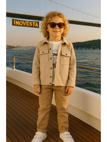 Erkek Çocuk orta Kalınlıkta Kaşe Gömlekli Özel Kombinli 3'Lü Takım