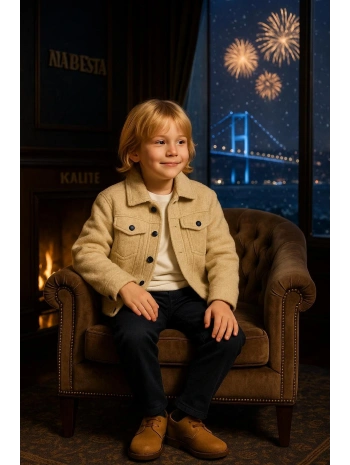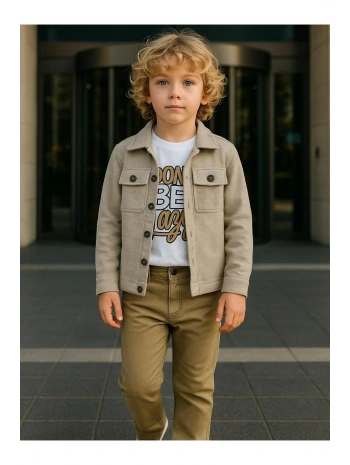Erkek Çocuk orta Kalınlıkta Kaşe Gömlekli Özel Kombinli 3'Lü Takım