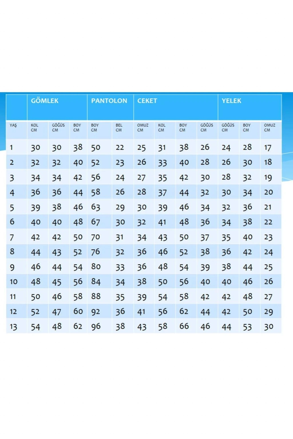- Standart boy ölçüsüne sahip, her yaş grubuna uygun tasarımıyla çocukların rahat hareket etmesini sağlar.; - Dokuma kumaş yapısı sayesinde dayanıklılığı artırırken şık görünümüyle dikkat çeker.; - Uzun kollu tasarım, mevsim geçişlerinde ideal koruma sunar ve kolay giyilip çıkarılabilir özelliğiyle pratik kullanım imkanı tanır.; - Gri renk seçeneği ile zarif ve modern bir stil oluştururken, farklı aksesuarlarla kolayca kombinlenebilir.; - Regular kalıp ve paça tipi, çocuğunuzun vücut hatlarına uyum sağlayarak konforlu bir deneyim sunar.; - Şık ve gece ortamları için ideal olan bu smokin, özel günlerde veya davetlerde çocuğunuzun tarzını tamamlar.; -1-12 yaş bedeni ile küçük erkek çocuklar için mükemmel uyumu garanti eder; böylece büyüdükçe de aynı kaliteyi koruyabilirsiniz.