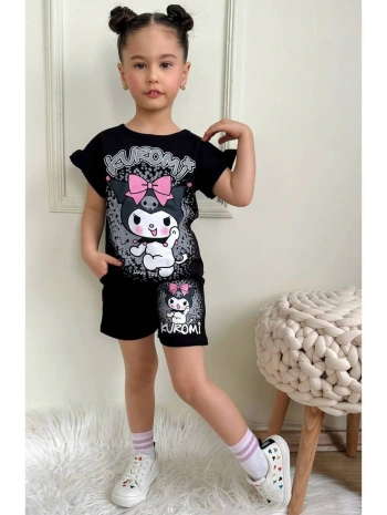 Kuromi Baskılı Alt Üst T-Shirt Şort Takım. Yazlık şortlu takım. % 100 Pamuk Alt Üst Takım