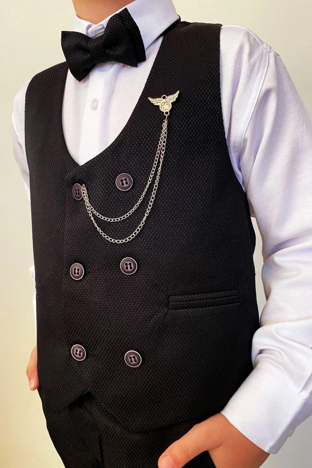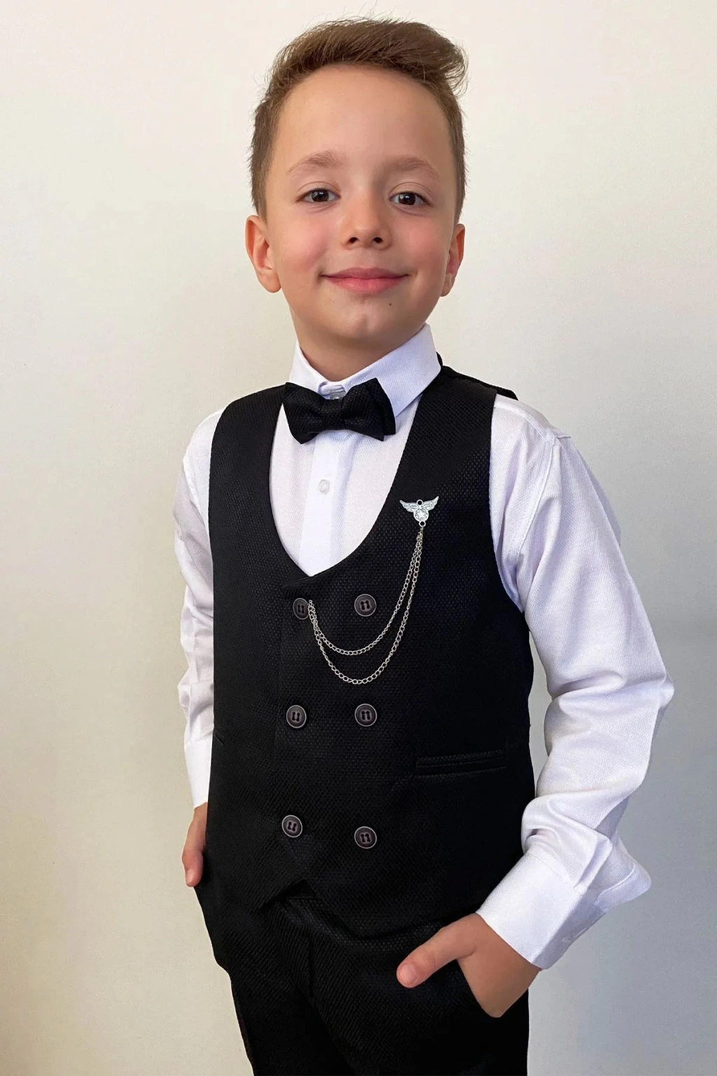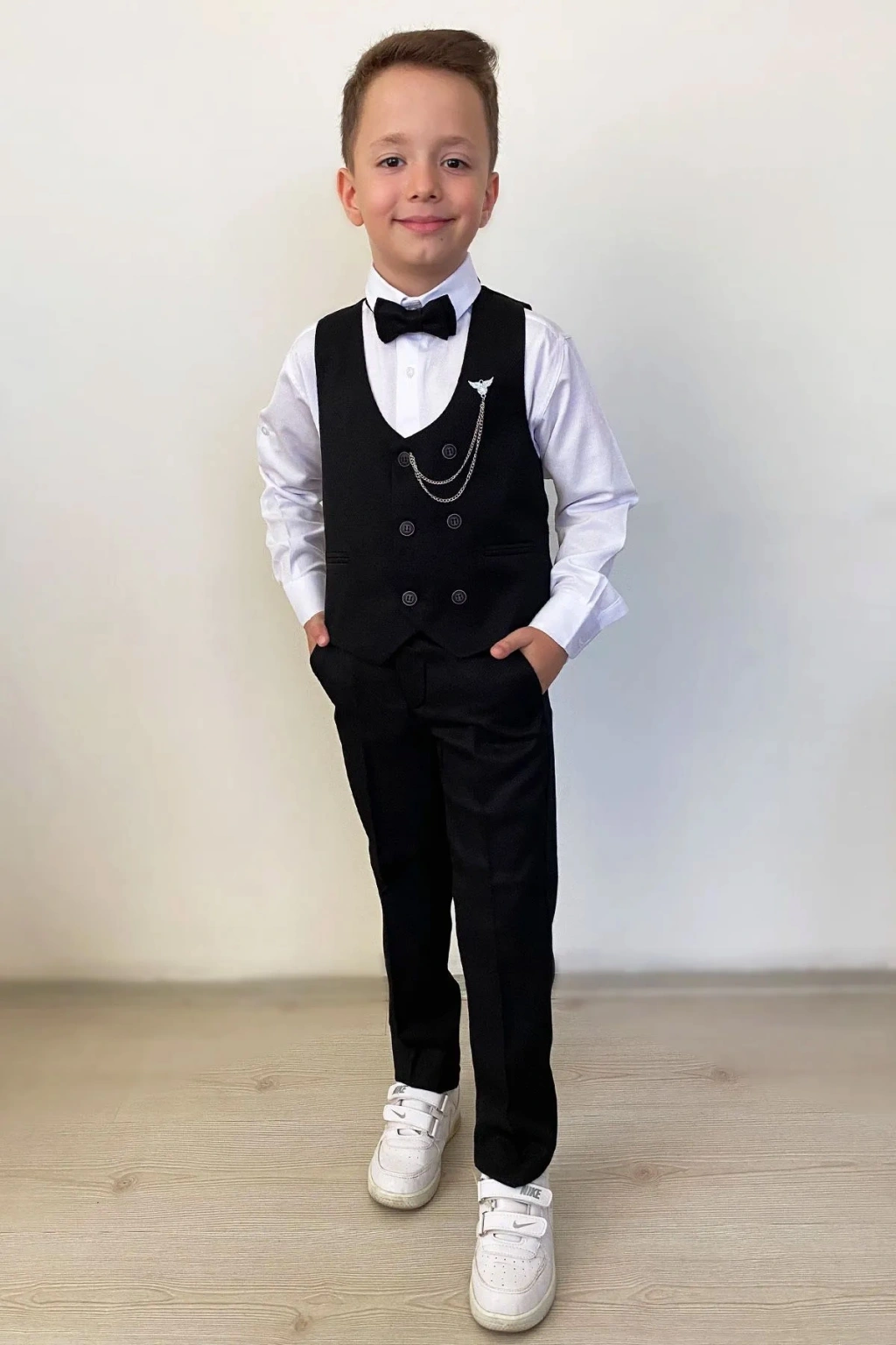 - Standart boy ölçüsüne sahip, her çocuğun rahatlıkla giyebileceği slim kalıpta tasarlanmıştır.; - Siyah renkteki düz deseniyle şıklığı ve kolay kombinlenebilirliği bir arada sunar.; - Her mevsim tercih edilebilecek şekilde tüm sezonlarda kullanılabilir; böylece yıl boyu stil sahibi görünümün korunmasını sağlar.; - %100 pamuklu kumaşı sayesinde cildi tahriş etmeden konforlu bir deneyim sunar.; - 2 yaşındaki çocuklar için ideal bedene sahiptir; hareket özgürlüğünü kısıtlamadan mükemmel uyum sağlar.; - Bel kısmında bulunan beli lastikli detay ile gün boyu rahatlık ve esneklik kazandırır.; - Young koleksiyonuna ait bu takım elbise, genç tarza sahip çocukların gardırobunda yerini almayı hak eder.; - Düz paça kesimiyle modern ve zamansız bir siluet çizerken casual ortamlara uygunluk gösterir.; - Günlük kullanım için ideal olan bu takım elbise, hem okulda hem de arkadaş buluşmalarında şık bir alternatif oluşturur.; - Type 1 yıkama talimatına uygun şekilde temizlenmesi pratiklik açısından avantaj sağlar.; - Cool & comfort persona ile tasarlanmış olup, hem şık hem de rahat bir görünüm sunarak günlük kullanım için uygundur.; - Sürdürülebilirlik detayının bulunmaması ise çevreye duyarlı bireyler tarafından dikkate alınması gereken bir husustur ancak bu durum ürünün genel kalitesinden ödün vermez.; - Uzun kollu yapısıyla mevsimsel geçişlerde ideal koruma sağlayarak serin havalarda bile sıcak tutar.; - Ceket yakası detayı ile resmiyetten uzaklaşmadan sofistike bir dokunuş katılır.