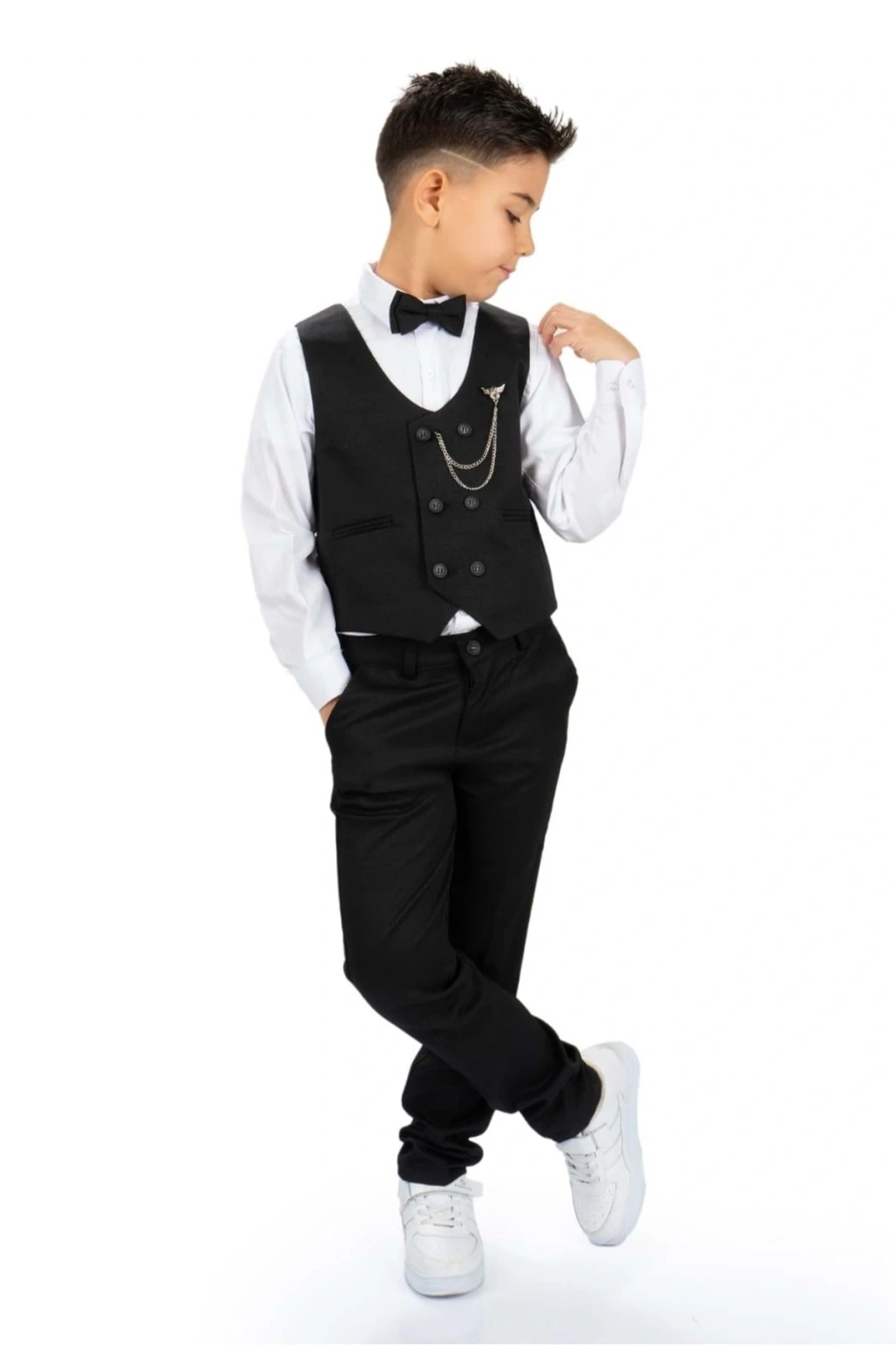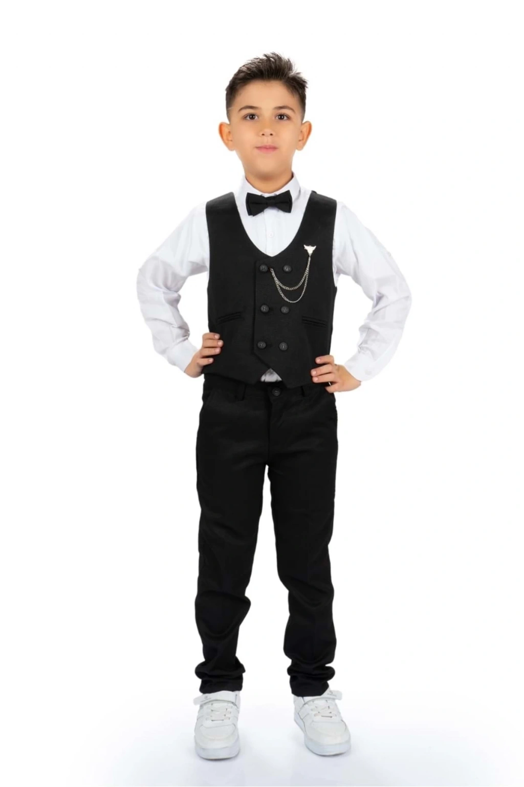 Gömlek, Yelek, Pantolon ve Papyon olarak 4 parçadan oluşan Erkek Çocuk Takım.