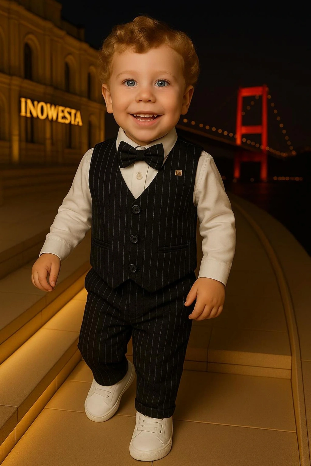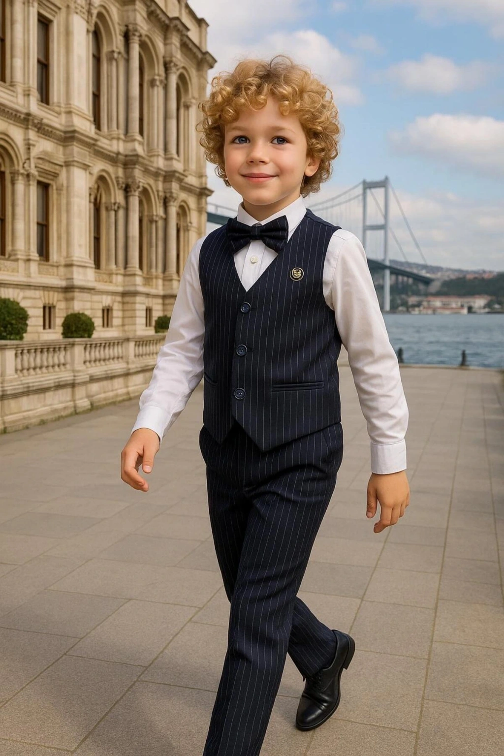 Erkek Çocuk Yelekli Takım Elbise | Gömlek-Yelek-Papyon-Pantolon| 4'parça Takım