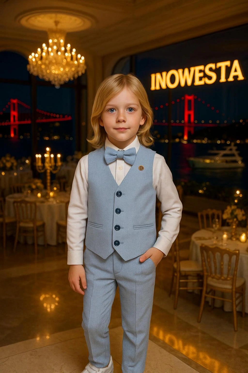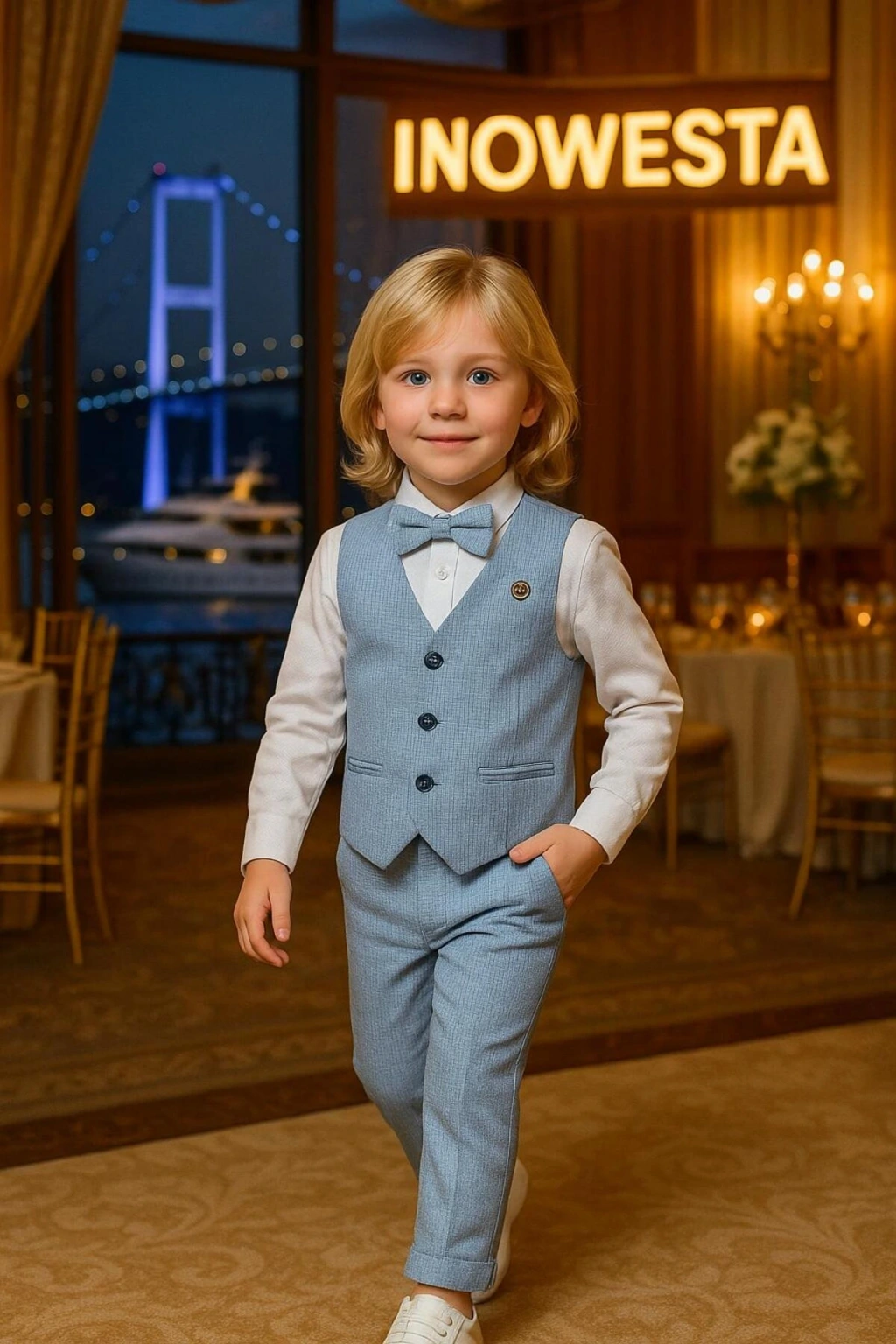Erkek Çocuk Yelekli Takım Elbise | Gömlek-Yelek-Papyon-Pantolon| 4'parça Takım