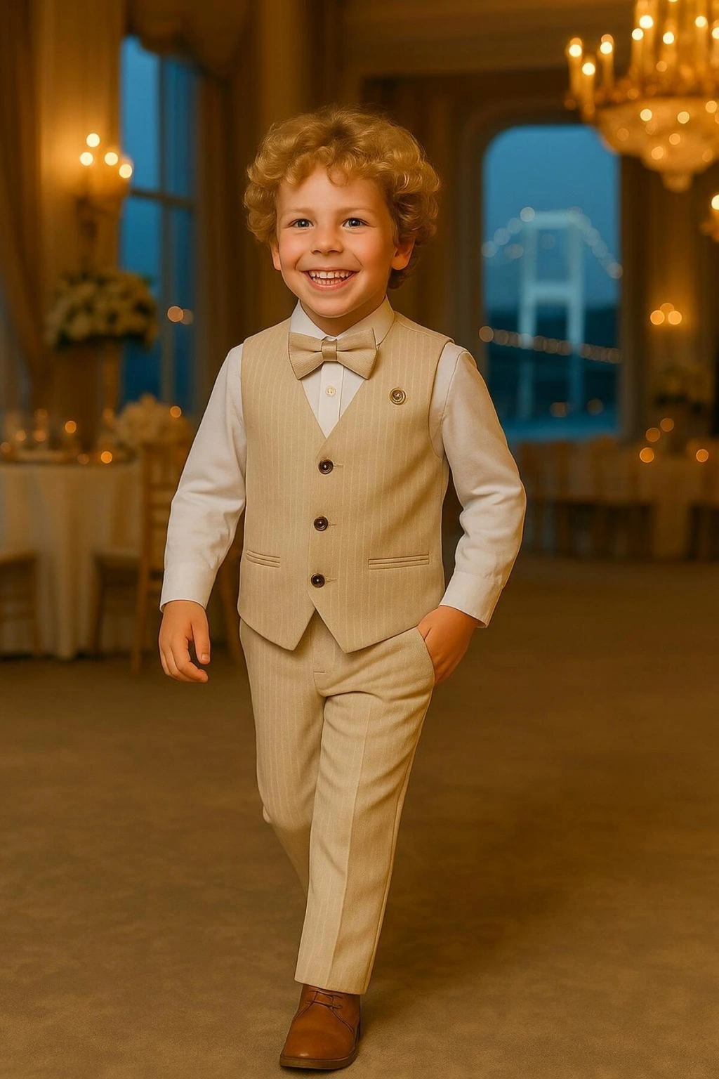 - Desenli tasarımı ile çocukların enerjisini yansıtan, şıklığı ve rahatlığı bir arada sunan takım elbise.; - Sürdürülebilir malzemeler kullanılarak üretilmiş olup, çevre dostu bir tercih yapmanızı sağlar.; - Doğal düğme detayları ile hem dayanıklı hem de estetik bir görünüm kazandırır.; - Her mevsim giyilebilen yapısıyla yıl boyu kullanım imkanı sunar.; - Regular kalıp sayesinde hareket özgürlüğü sağlarken, uzun paça tipiyle modern bir siluet oluşturur.; - Party koleksiyonuna ait bu takım elbise, özel günlerdeki şıklığınızı tamamlar.; - Uzun kollu gömlek ve pantolon kombinasyonu ile klasik ve zamansız bir tarz sergiler.; - Armürlü deseniyle göz alıcı bir stil vurgusu yaparak dikkatleri üzerinize çeker.; | SararÖZEL Hafif Gofre Takım Elbiselik Kumaşından Üretilmiştir | Aylık Grubumuz Zıbınlıdır alttan çıtçıtlıdır Gömleğimiz bebeklerimize özel üretilmiştir .