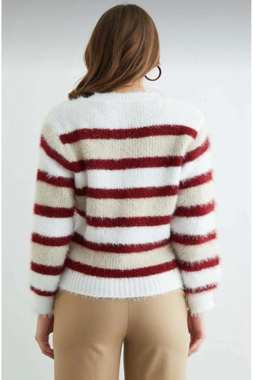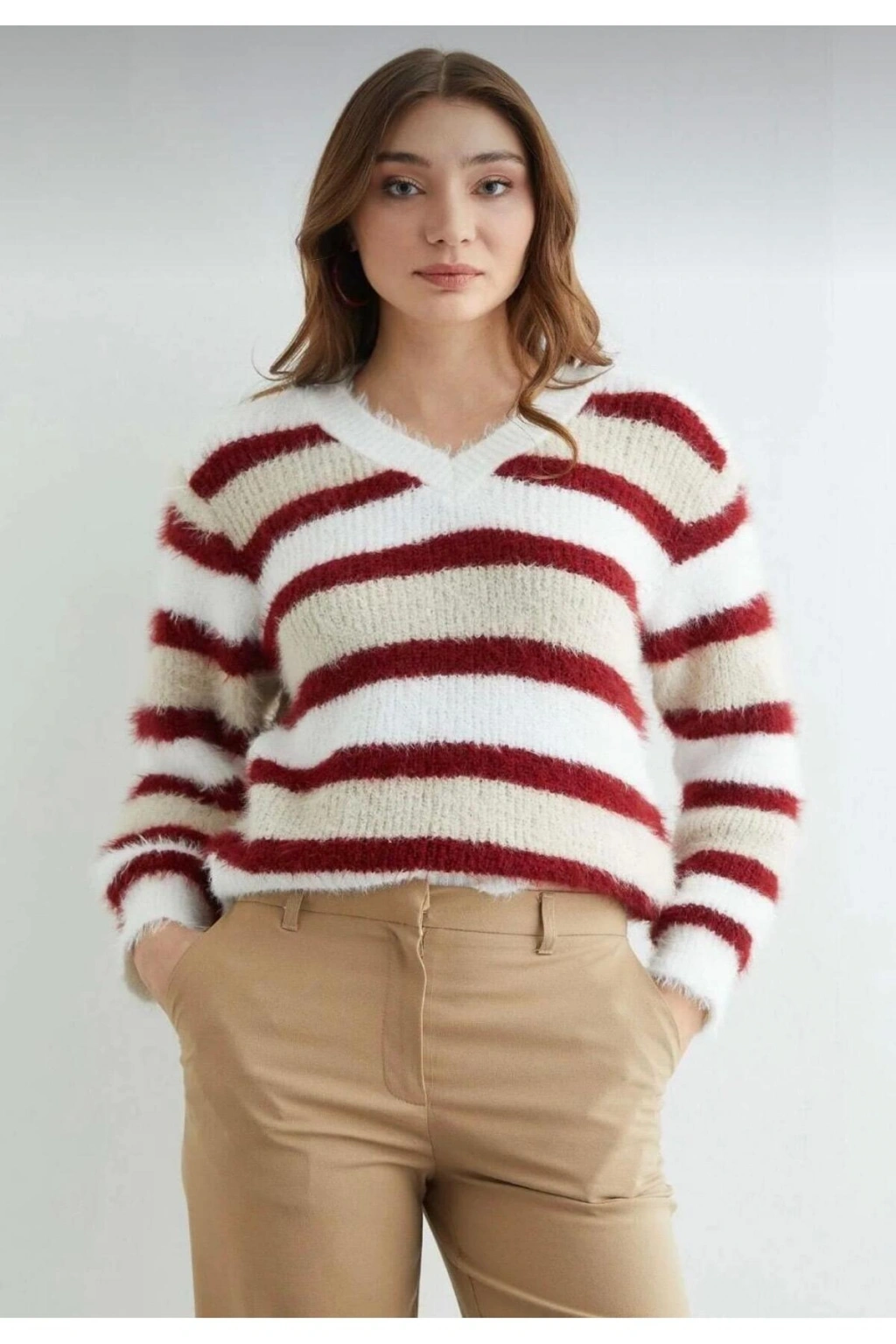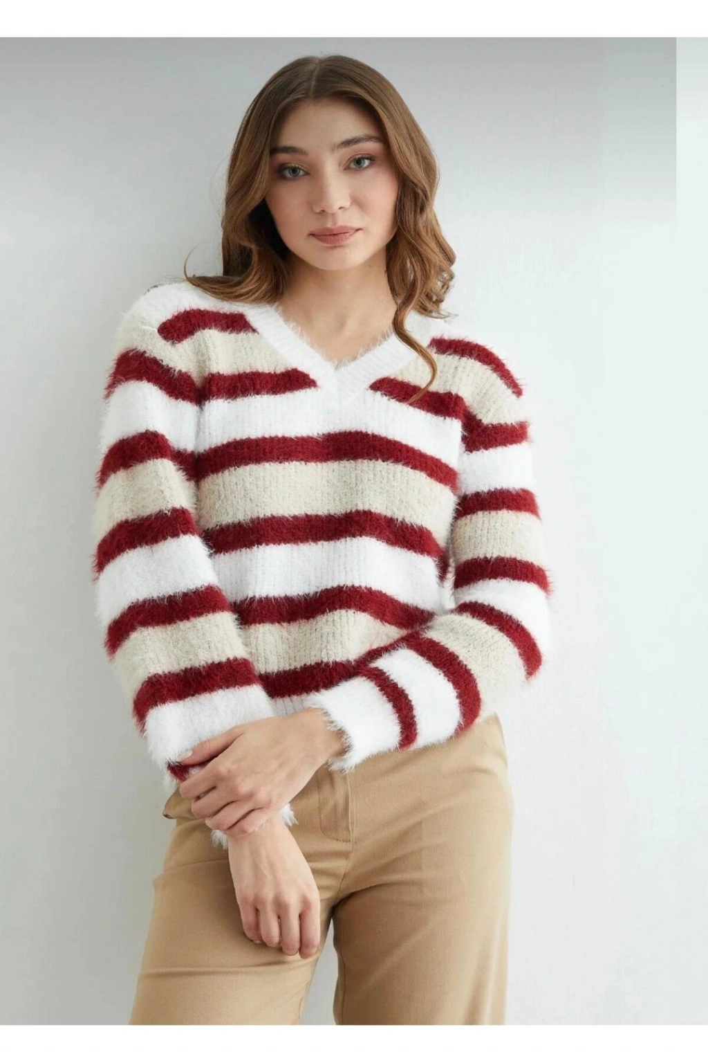 Kadın Sakallı Triko V Yaka Kazak (Yumuşak Tuşe) standart Beden