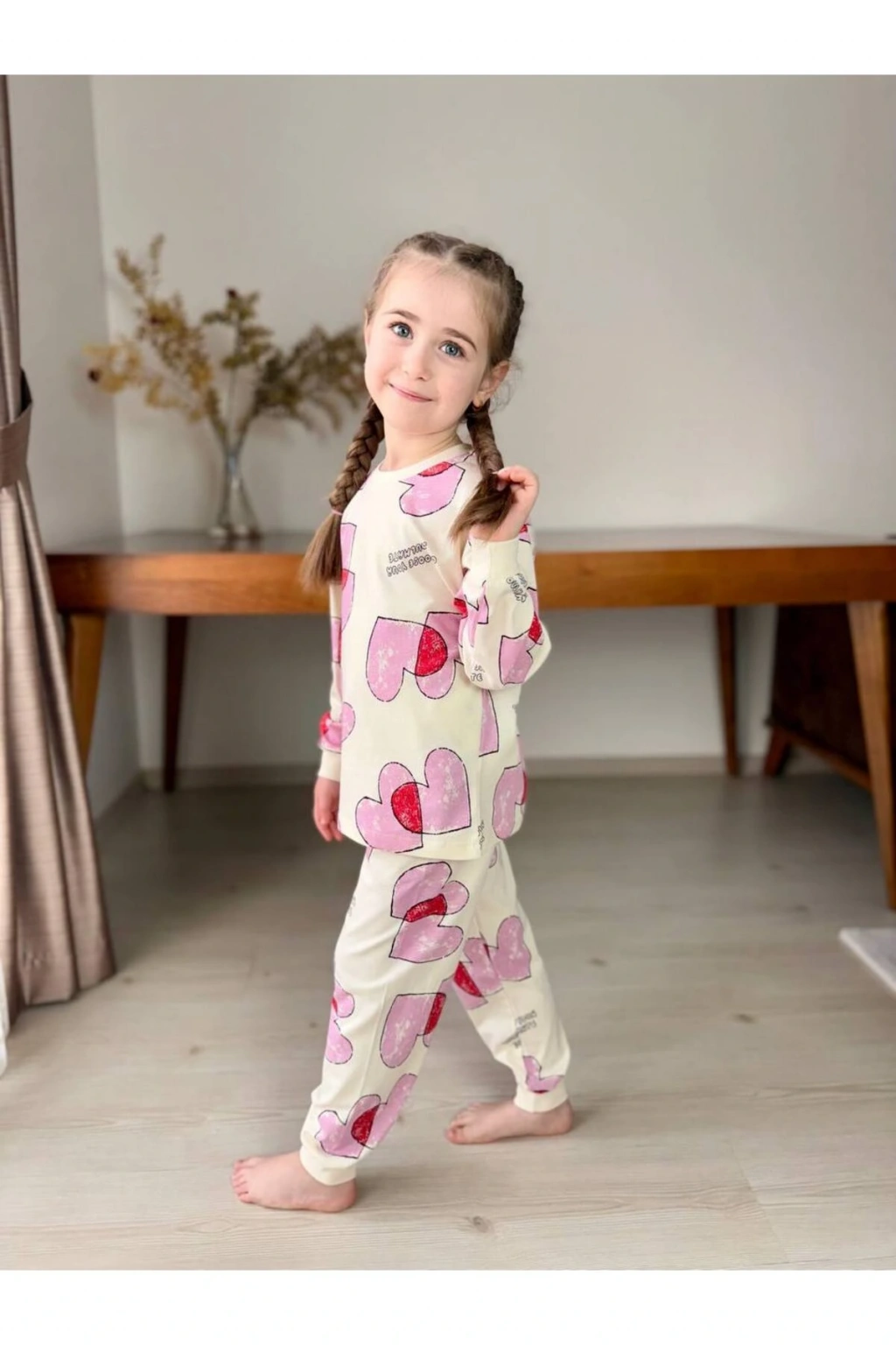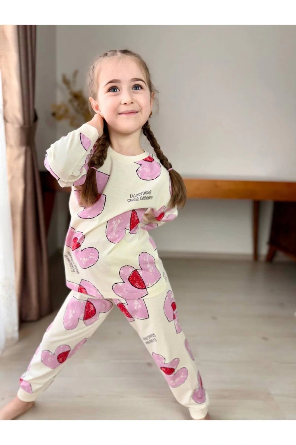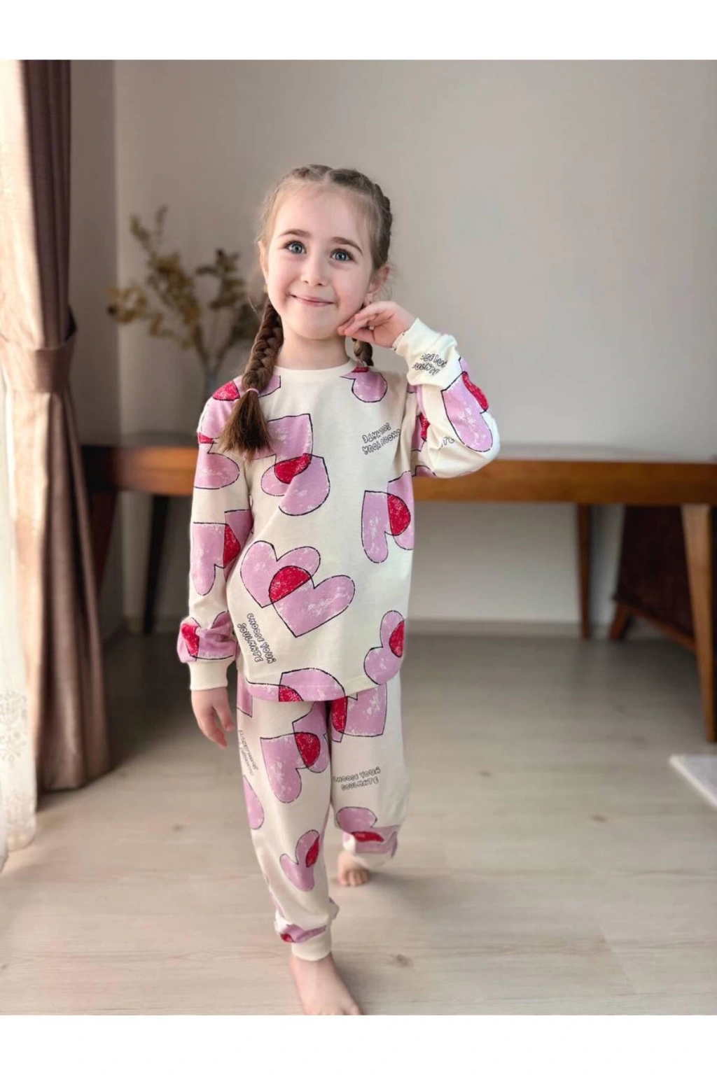 Çocuklarınızın konforunu ve şıklığını bir arada sunan Kalp Baskı Detaylı %100 Pamuklu Mevsimlik Kız Çocuk Pijama Takımı, zarif tasarımı ve yumuşak dokusuyla favoriniz olacak! %100 pamuklu kumaş: Doğal ve nefes alabilen yapısı sayesinde hassas ciltler için güvenlidir.; Pembe Kalp baskı detayı: Modern ve sevimli bir tasarım sunar.; Mevsimlik kullanım: Orta kalınlıktaki yapısı ilkbahar, sonbahar ve serin yaz akşamları için idealdir.; Ürün Detayları: Kumaş Türü: %100 Pamuk Renk: Ekru-Pembe Mevsim: Mevsimlik kullanım için uygundur Beden Seçenekleri: 2-8 yaş arası Yıkama ve Ütüleme Talimatı: Maksimum 30°C'de, benzer renklerle makinede yıkayınız.; Ağartıcı kullanmayınız.; Orta ısıda ütüleyiniz, baskı detaylarına zarar vermemek için tersten ütü yapınız