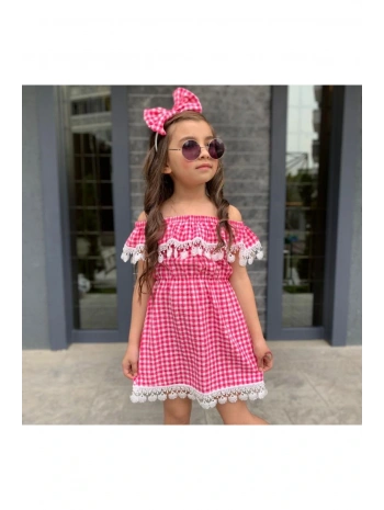 Kız Çocuk Dantelli kolyeli özel gün yazlık elbise