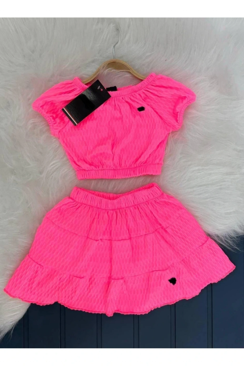 Kız çocuk crop etek yazlık alt üst takım(1 beden büyük alınız)