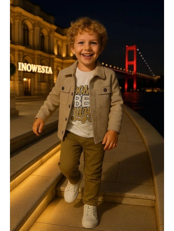 Erkek Çocuk orta Kalınlıkta Kaşe Gömlekli Özel Kombinli 3'Lü Takım